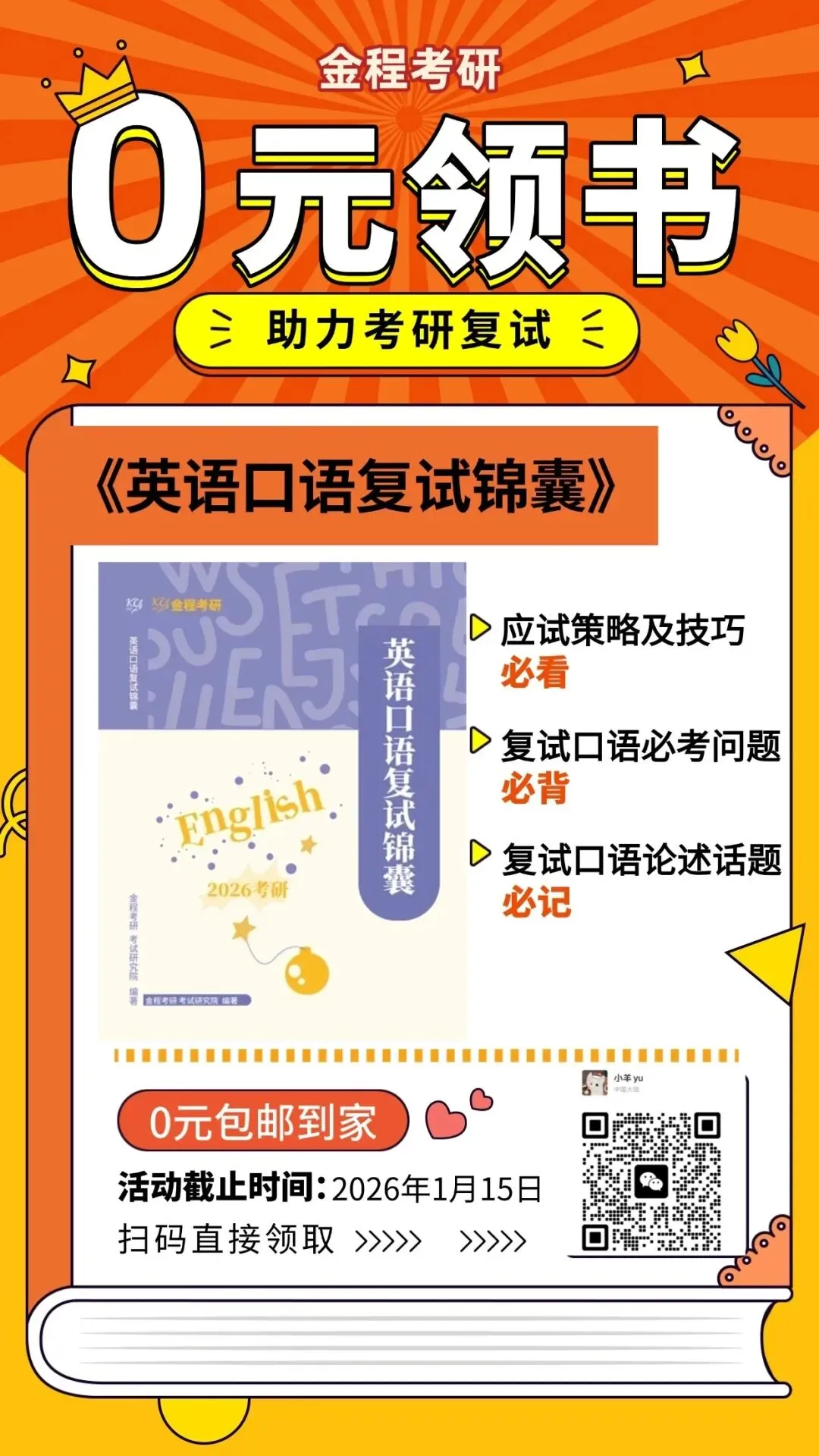 别担心,金程考研为你准备了《#英语口语 复试锦囊》,现0元免费送,帮你从容应对复试口语,开口就能赢好感!