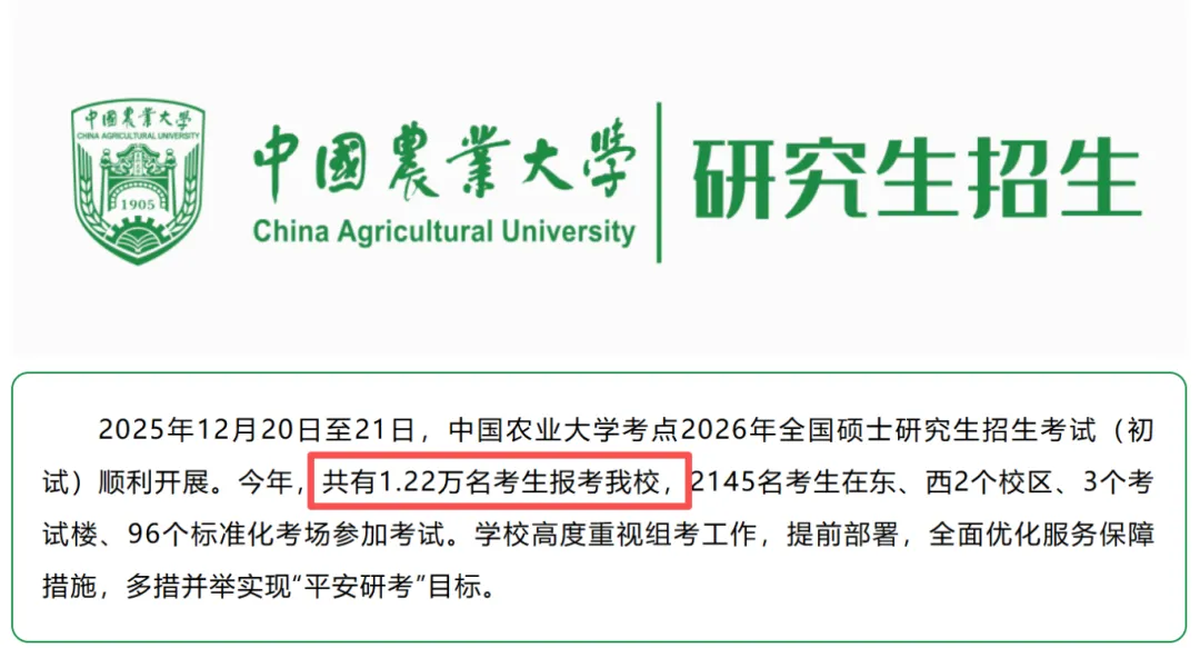 中国农业大学今年共有1.22万名考生报考。