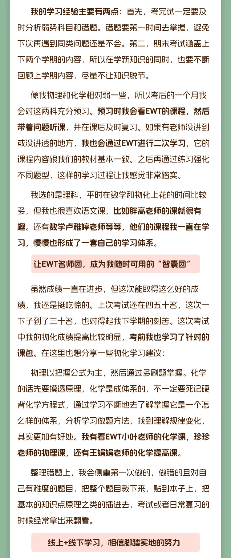 EWT优秀学员分享(第19期)| 升学e网通助我搭建高效学习体系