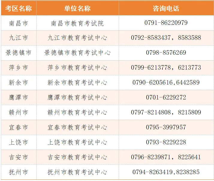 附件2 江西省中小学教师资格考试(笔试)各考区咨询电话