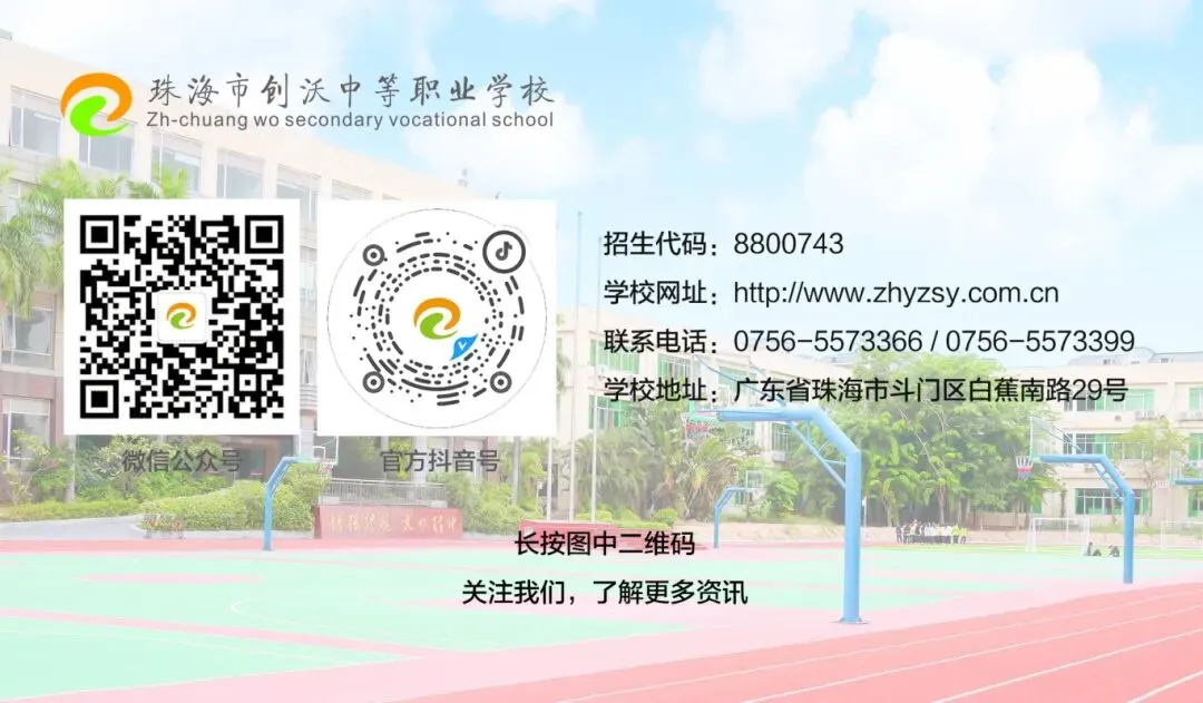 填报志愿报名:应届初中毕业生可在教育局中考报考系统填报志愿,选择珠海市创沃中等职业学校(招生代码:8800743)和专业即可,优先录取第一志愿报读我校的学生。