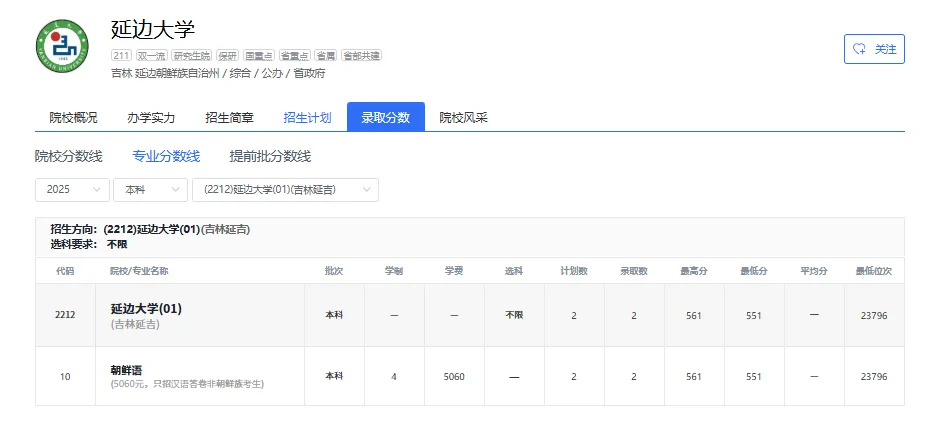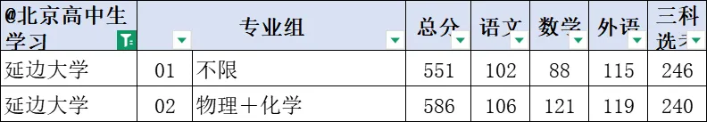 延边大学 01 不限 551