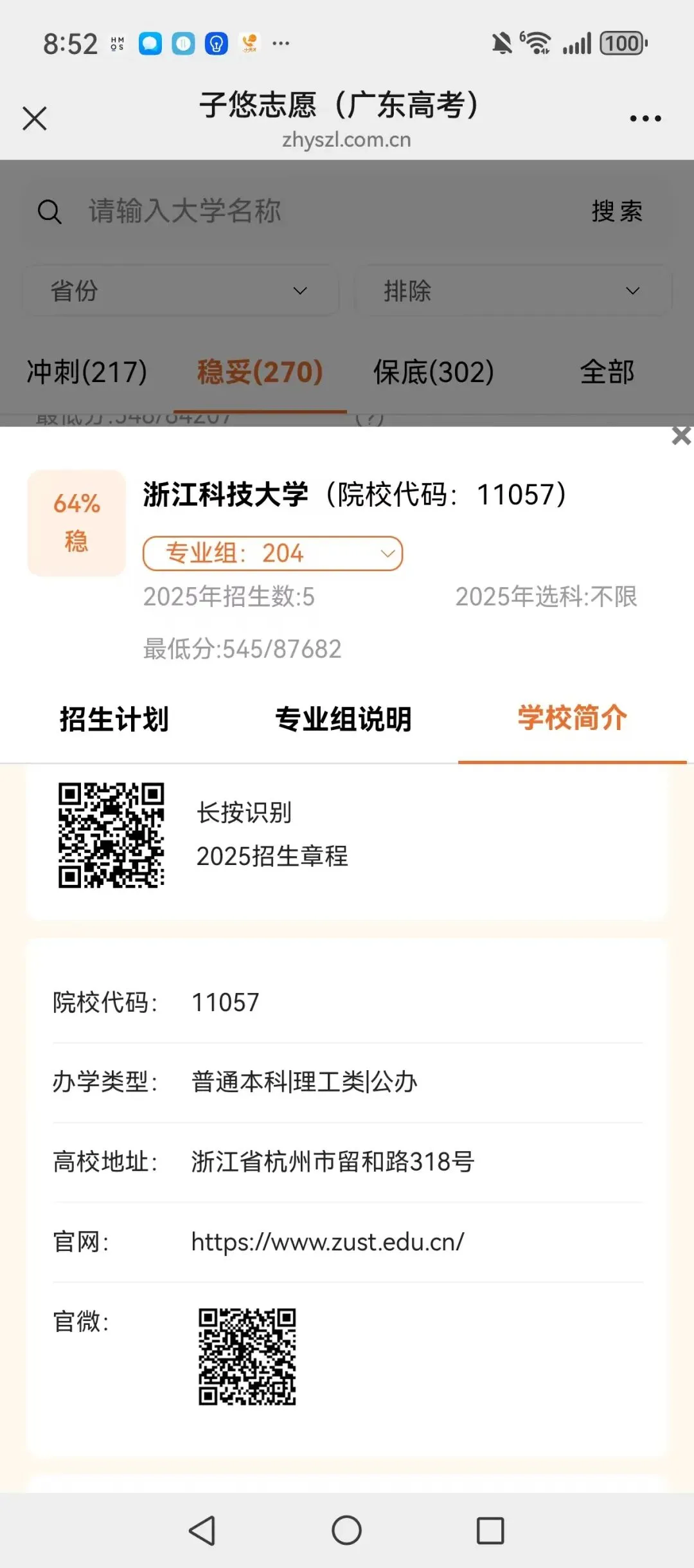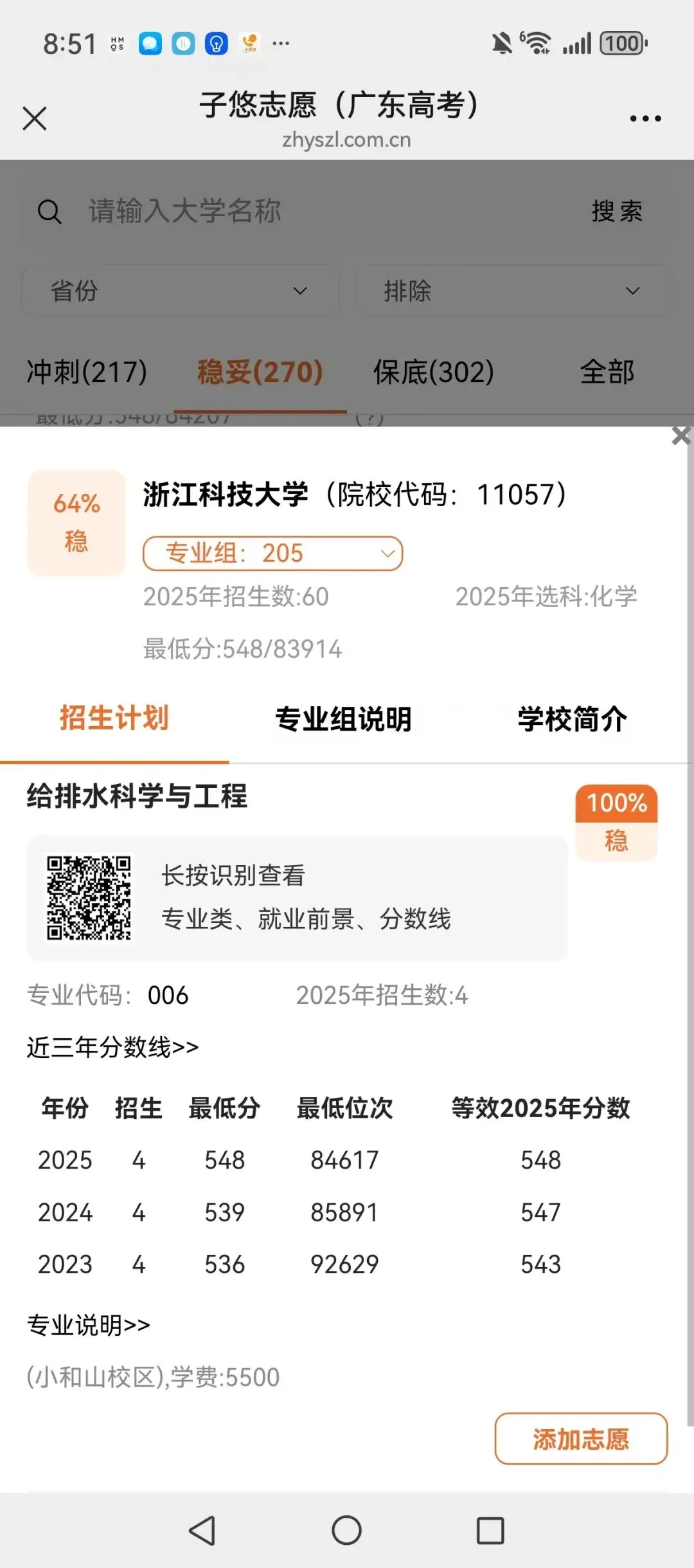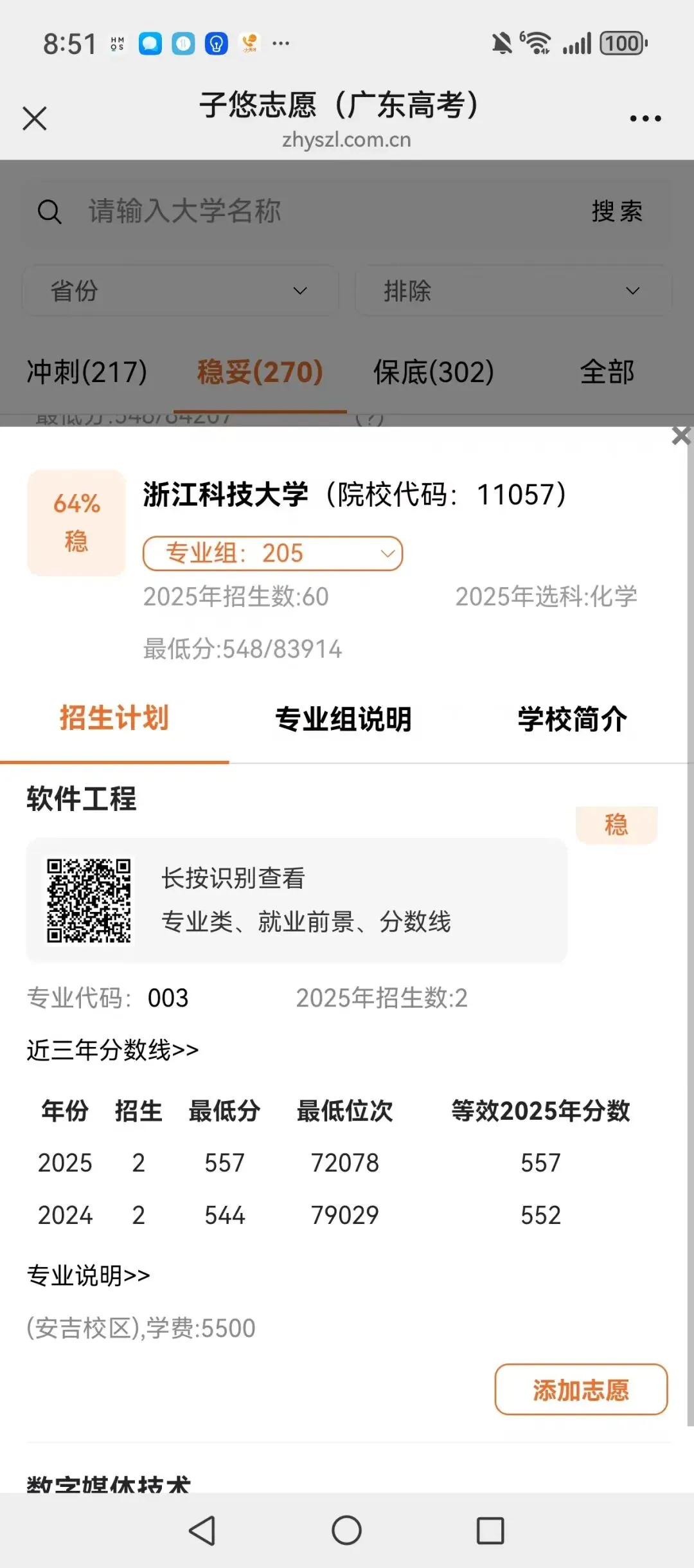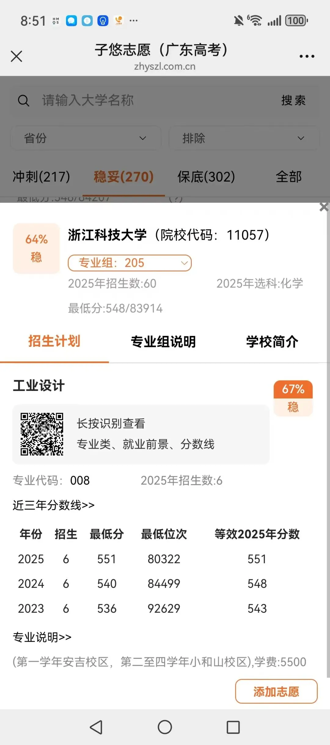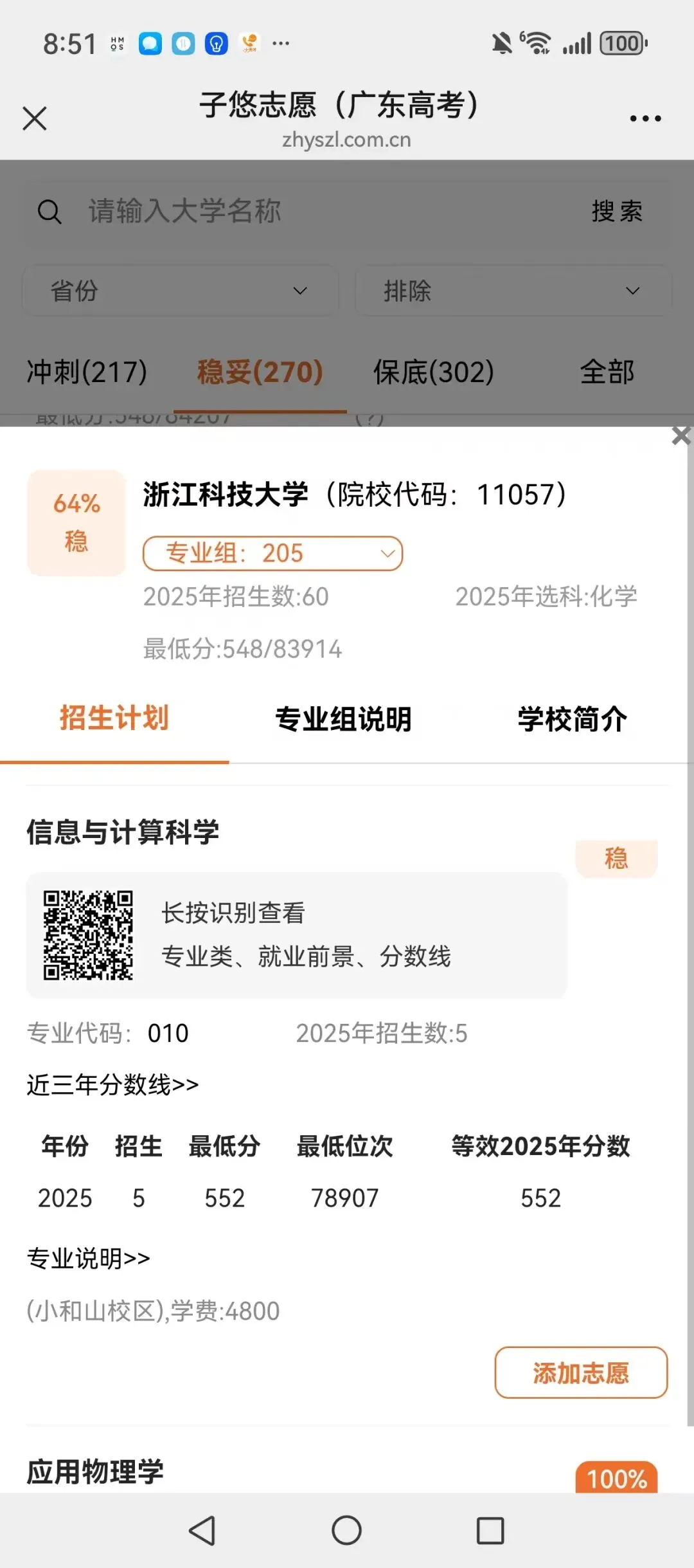 识别左侧二维码,查大学、查专业
