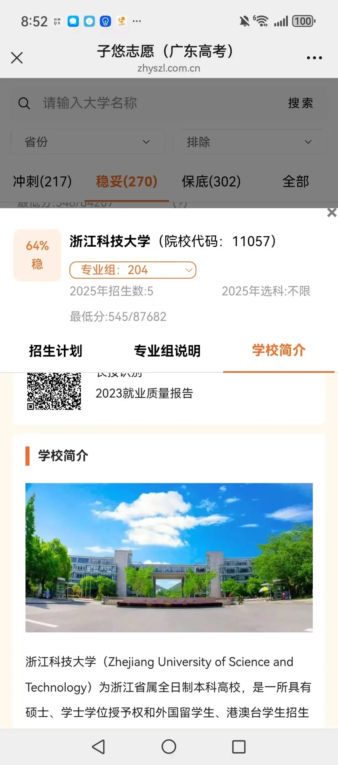 2025广东高考,浙江科技大学各专业录取分数线及就业报告