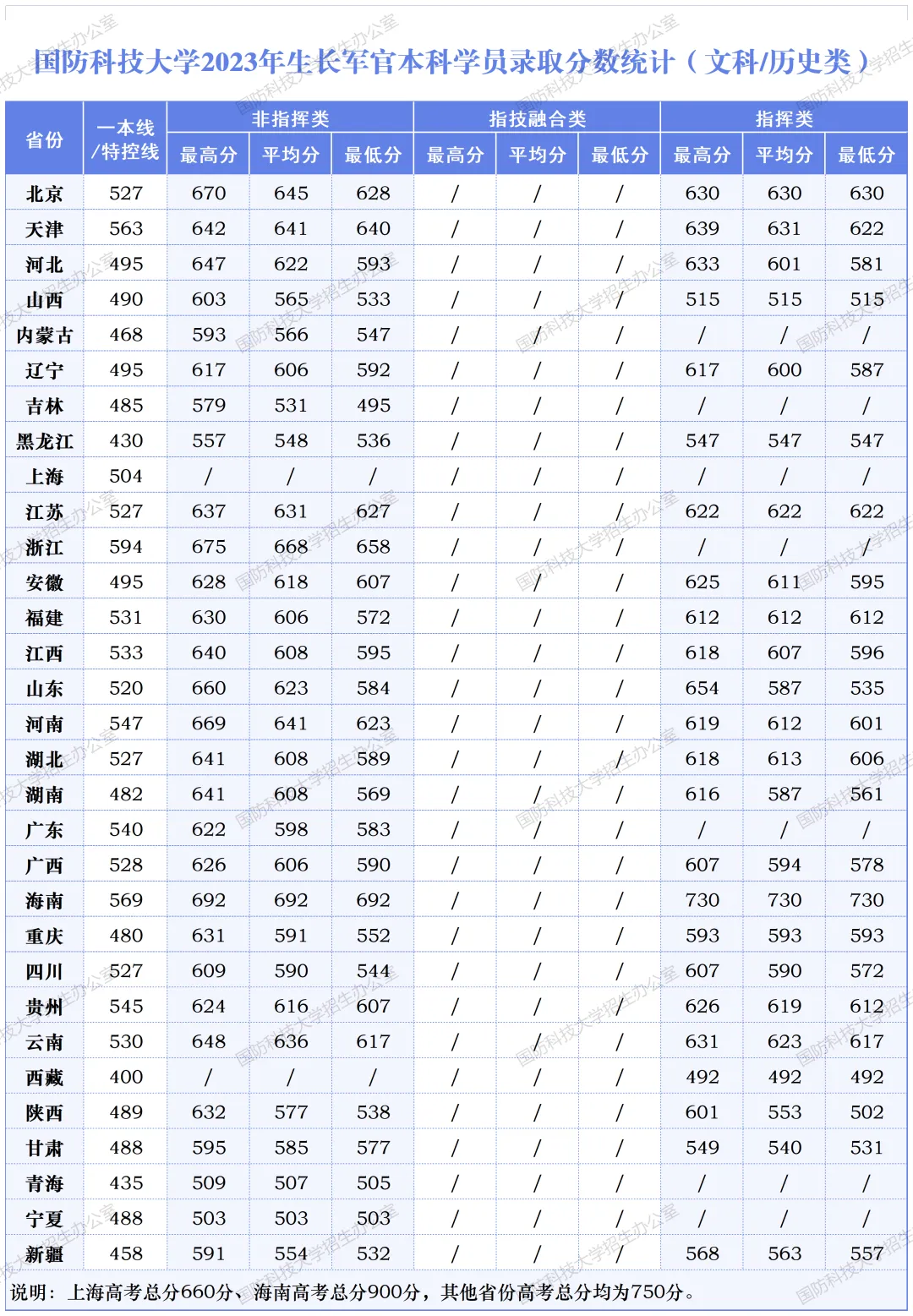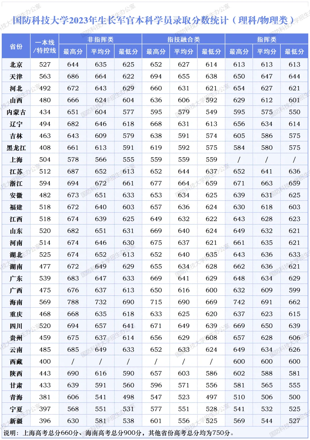 >国防科技大学2023-2025年录取分数线