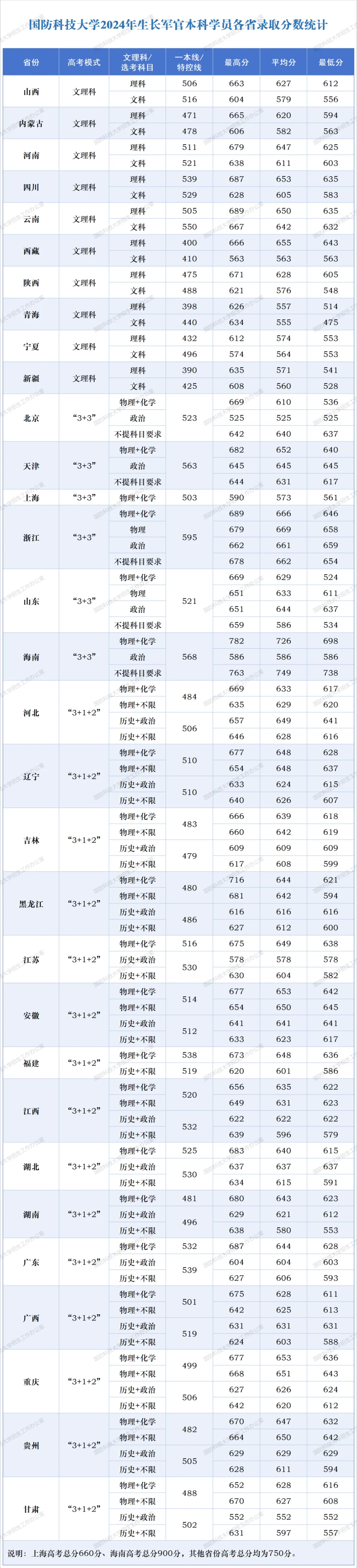 国防科技大学2023-2025年录取分数线