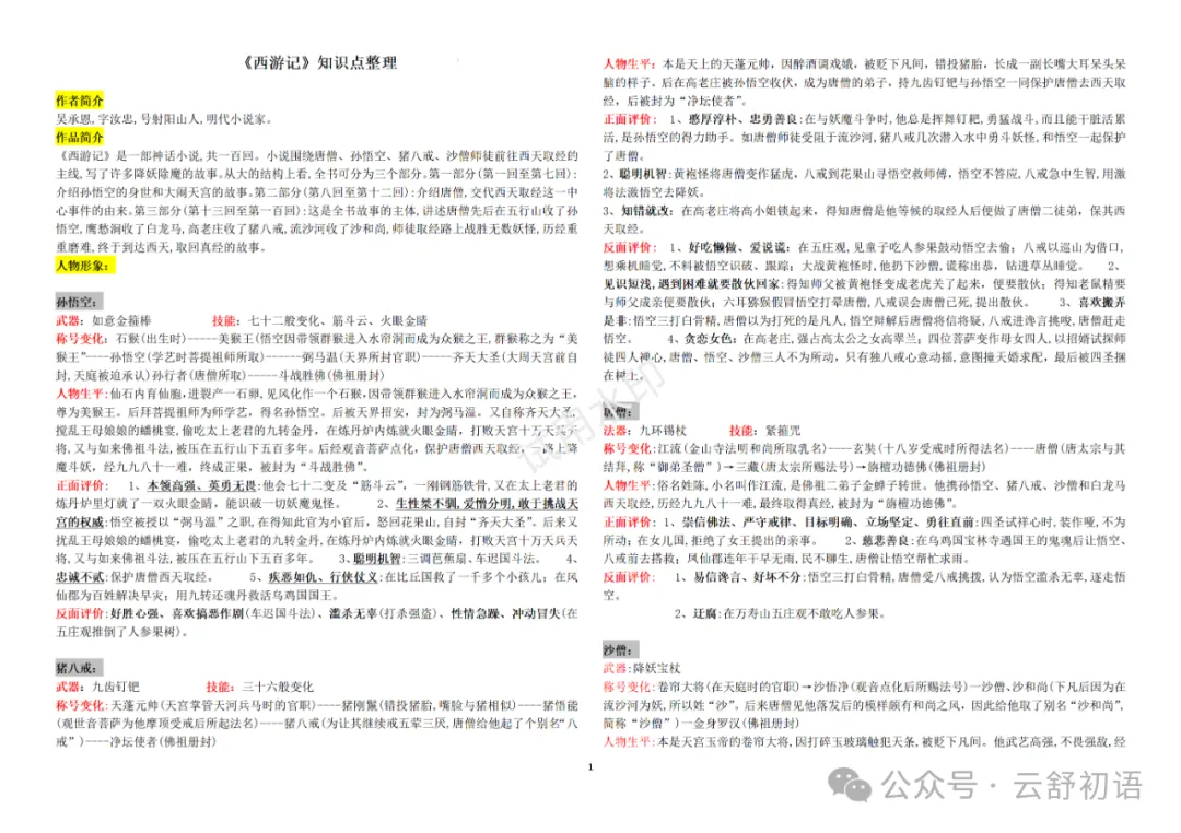 没读《西游记》也可应对期末考试的法宝知识点