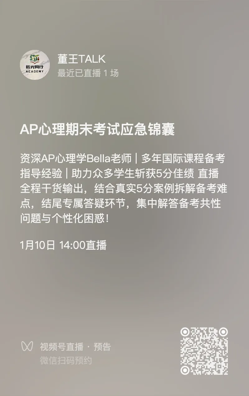 我们的直播时间和预约的二维码,也可以扫二维码📅预约: