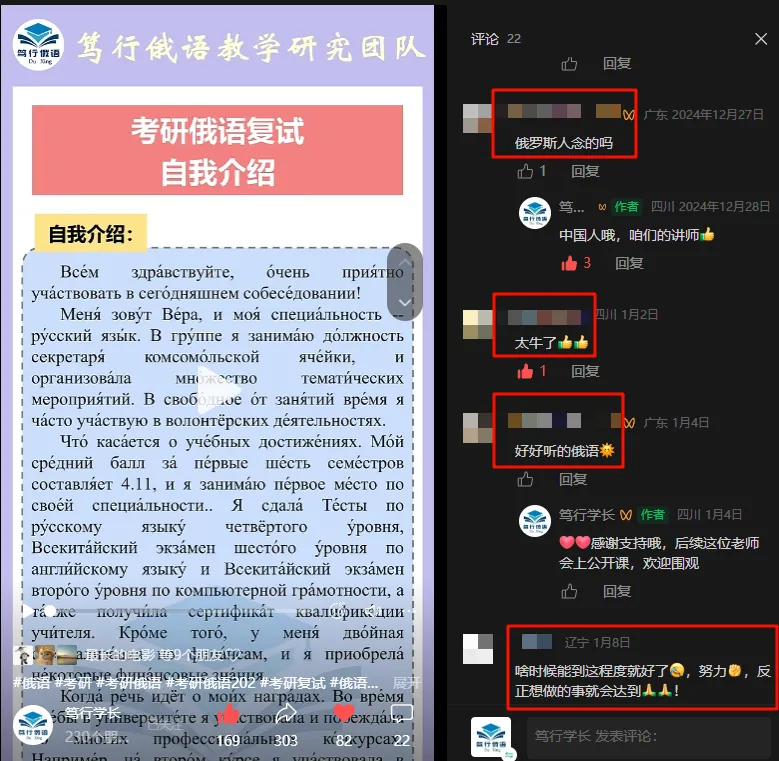 地道发音示范跟着读就能快速掌握发音技巧、理顺表达逻辑,每天跟读5分钟,寒假结束就能拥有一份亮眼的俄语自我介绍,复试开场直接赢在起跑线!
