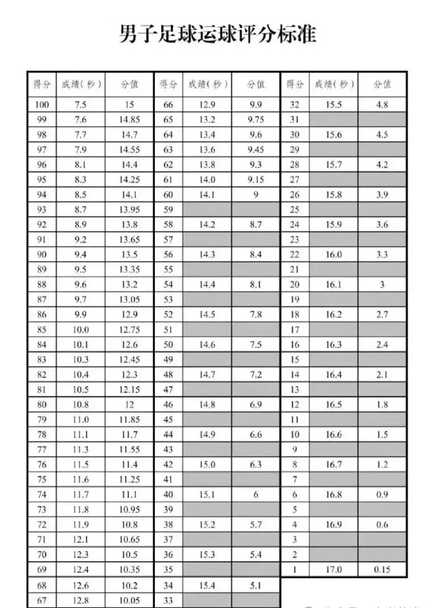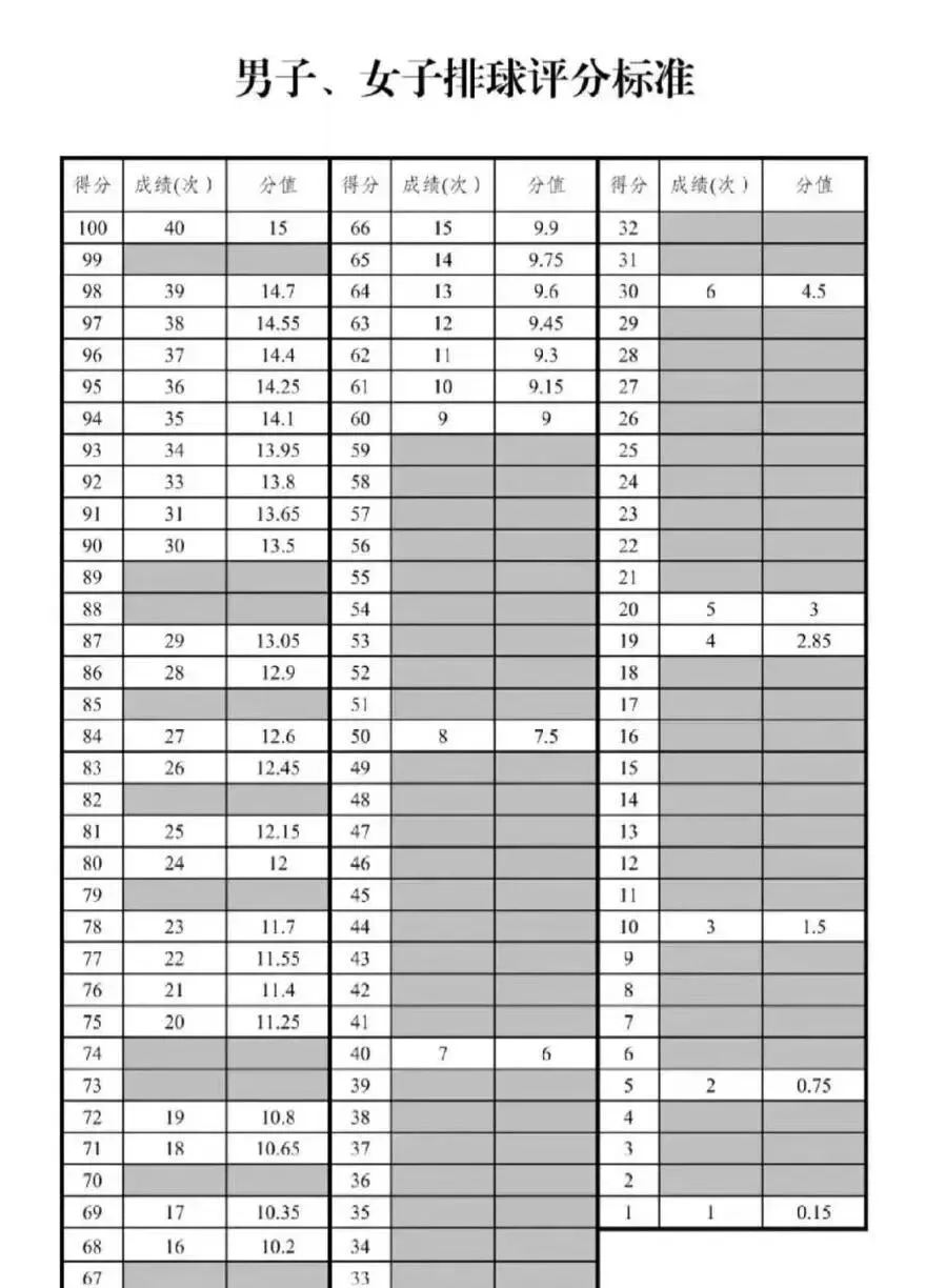 乌鲁木齐中考体育考试项目及评分标准