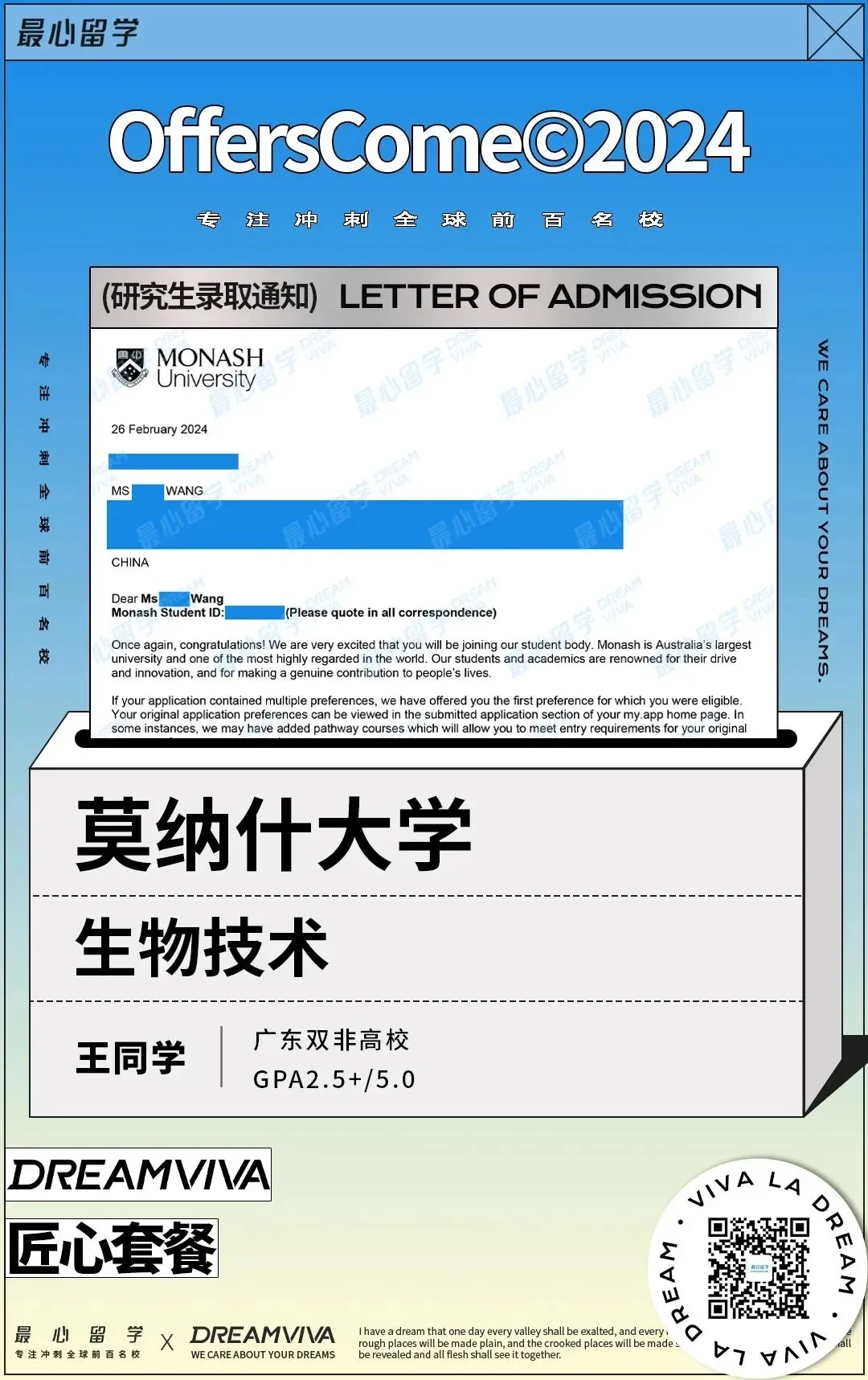 幸好遇到了最心,蕾酱老师不仅愿意挑战这个高难度 case,还带着团队用 “广撒网多捕鱼” 的精准策略,从项目选择、背景提升到文书打磨全程把控。