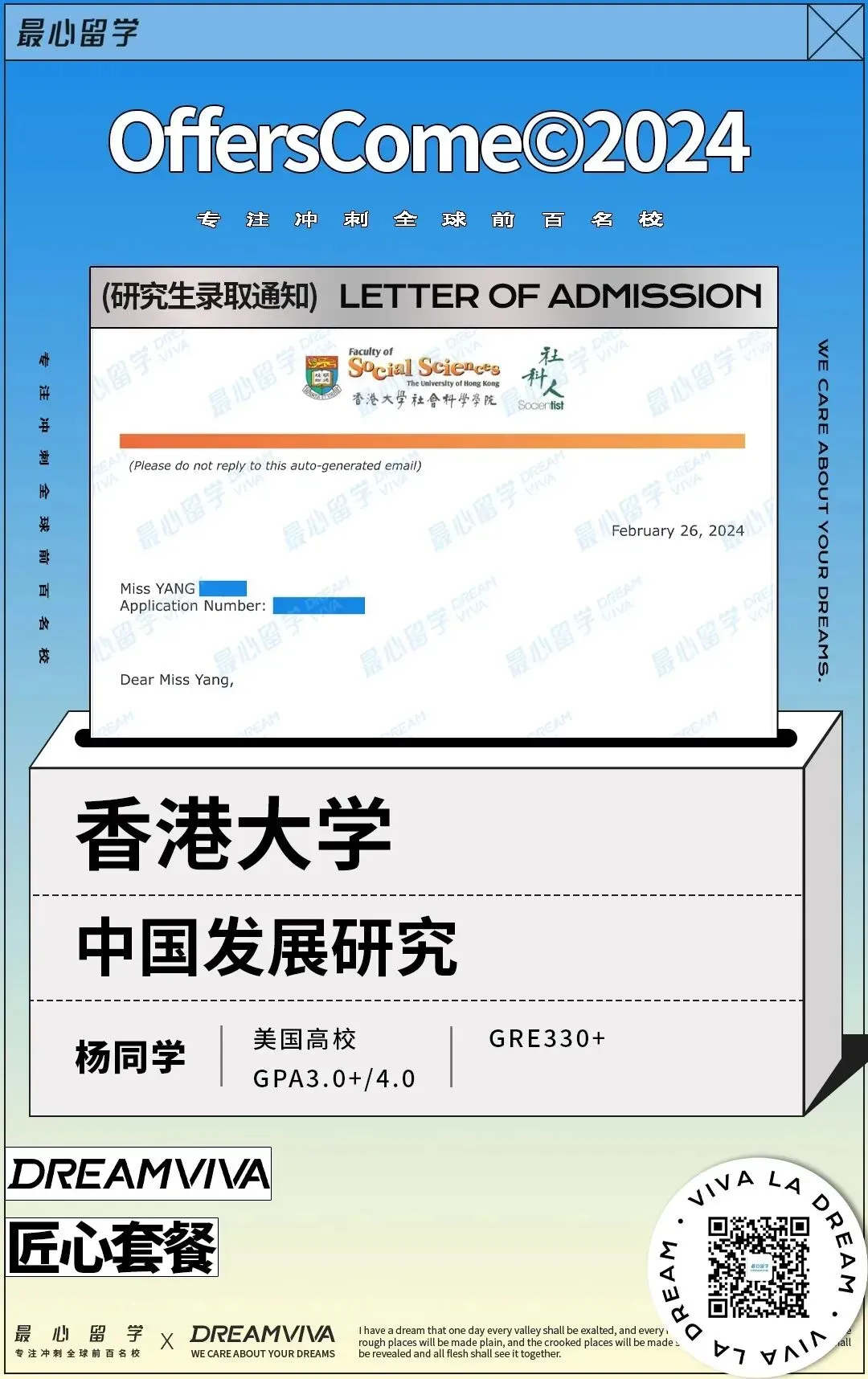 他们用 “先保底再冲刺” 的策略,先帮我无雅思申英澳锁定 QS100 录取,后续再冲港美,每一步都安排得明明白白,全程不用我操心,能顺利上岸真的全靠他们的专业和靠谱!”
