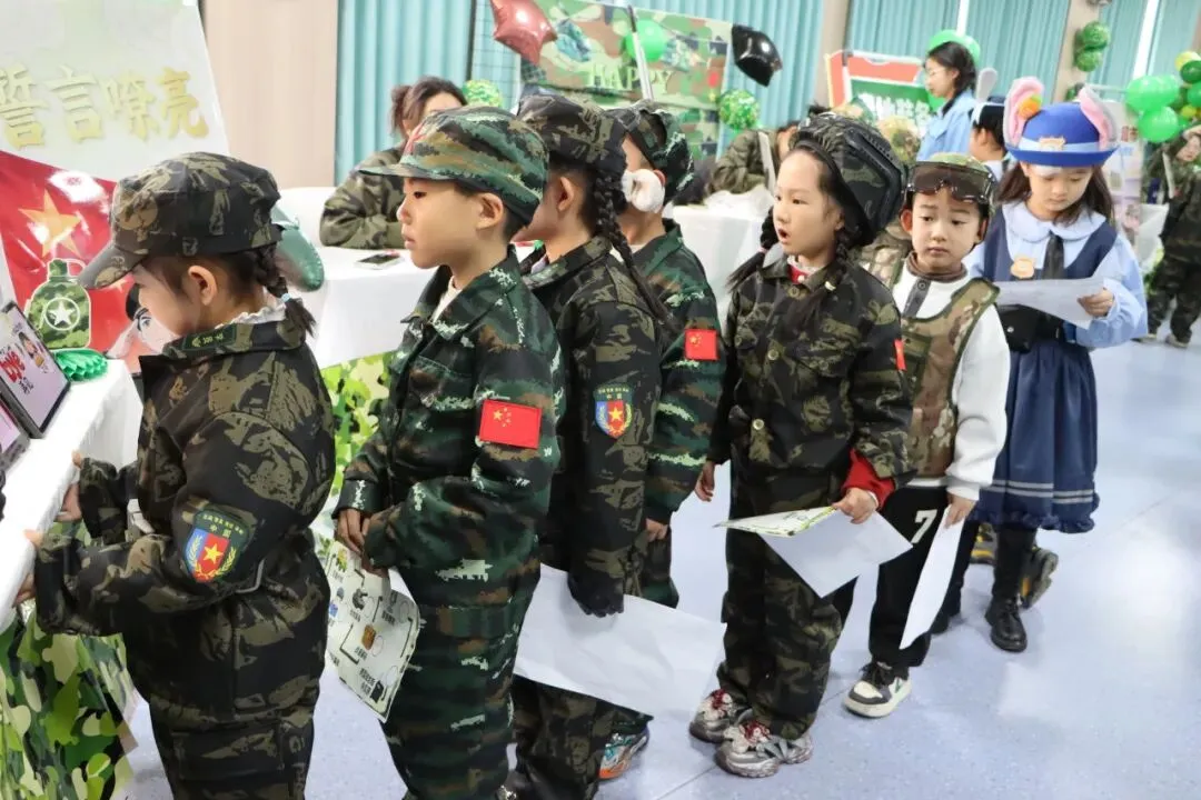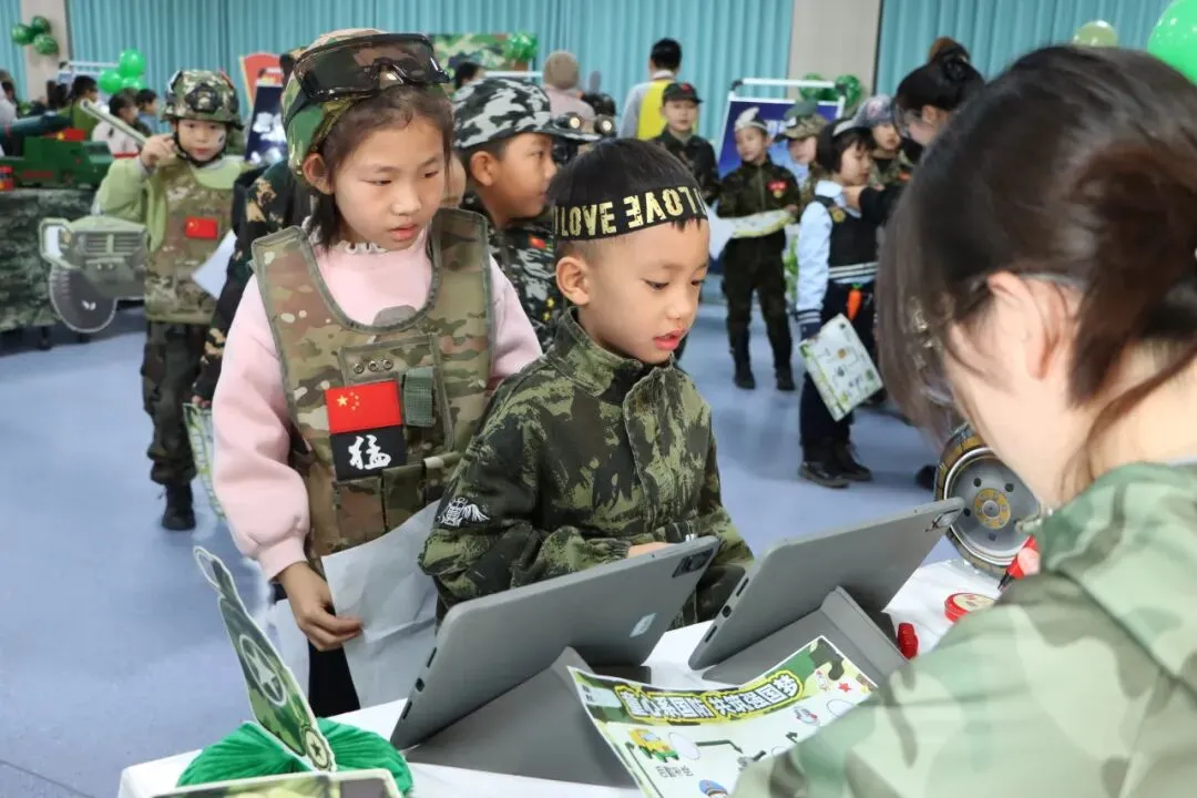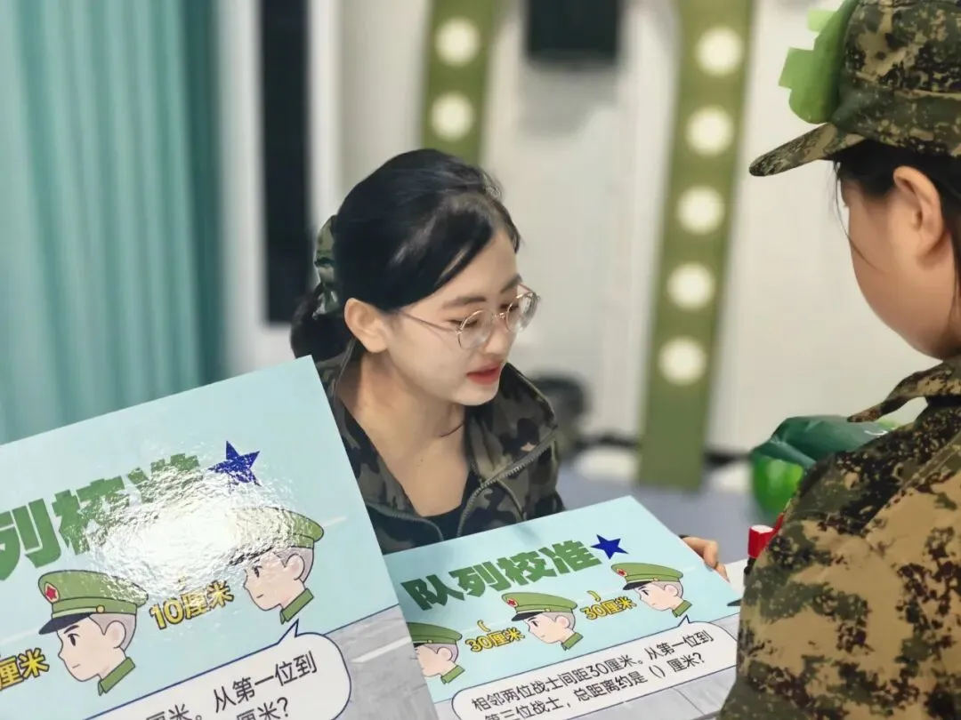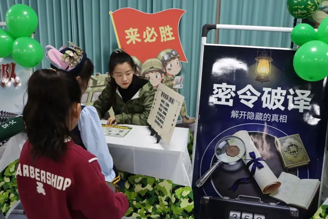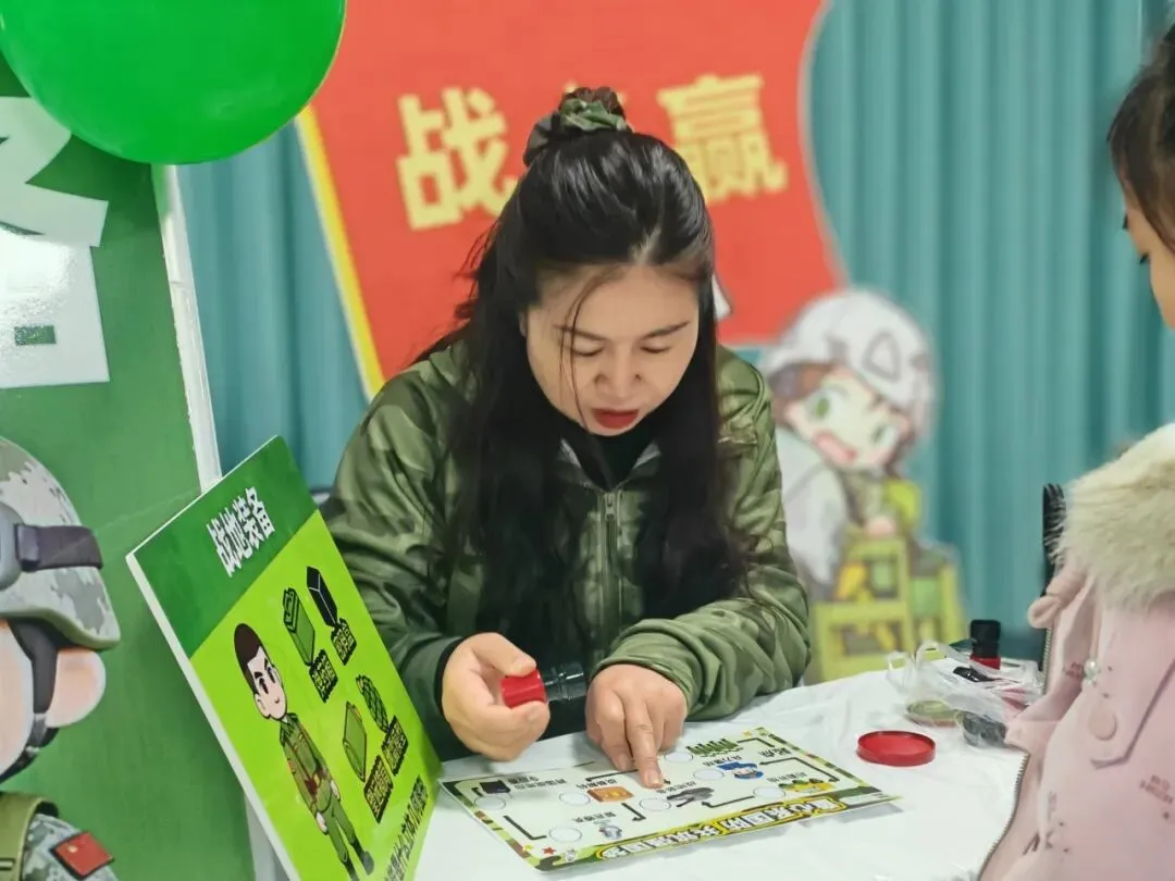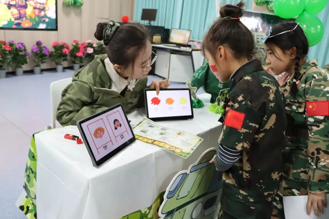 测评现场军事氛围浓厚,迷彩装饰与主题关卡相映成趣。一年级设置“后勤补给”“兵力集结”等七大关卡,二年级则迎来“作战指挥中心”“战机巡航”等七重挑战——各关卡巧妙对应学科核心能力点,让学生在趣味情境中自信展示学习成效。