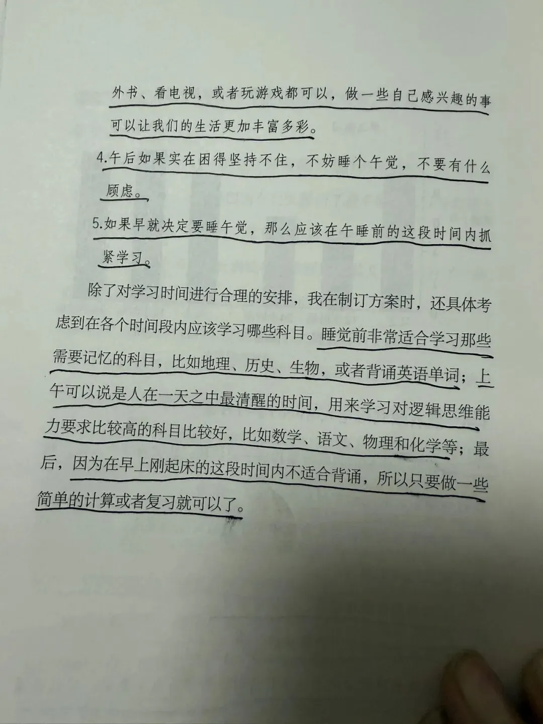 不知大家是否有过以下这些奇妙的经历;学过的内容在过了一段时间后,理解的更为深刻了;之前怎么也想不明白的知识突然在某一天恍然大悟就理解了;练钢琴时有一段曲子总也弹不好,一赌气之下就去睡觉了,第二天早上起床后再弹,居然能流畅的弹出来了,等等。这种不可思议的现象叫做“记忆恢复”。出现这种现象,说明在我们睡着的时候,大脑中的信息得到了很好的分类整理。也就是说,做梦时我们的记忆能得到巩固,就像葡萄酒一样,在沉睡中逐渐熟成了。但反过来说,这也意味着在我们学到某些知识以后,需要等待一段时间才能让记忆恢复,从而充分发挥作用。相对于刚刚记住的知识,人脑更容易利用的是已经整理好的、几天前学习的知识。在睡觉前把题目过一遍也是一种很重要的学习技巧。不仅夜晚的睡眠具有巩固记忆的效果,午睡也同样有效。