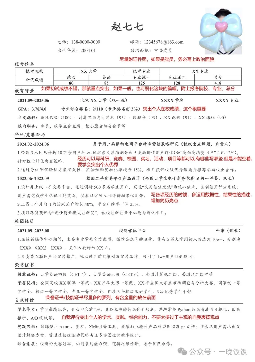 一份好的简历不仅展示个人实力,还能让导师看到个人潜力与态度,极大增加复试逆袭加分可能。