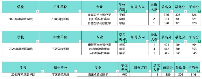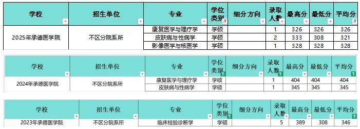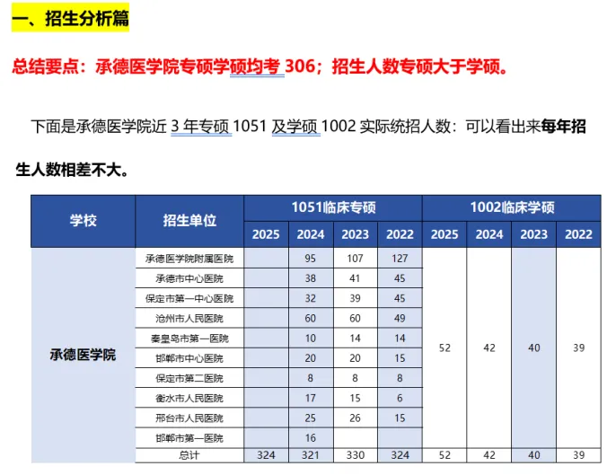 总结要点:承德医学院专硕学硕均考306;招生人数专硕大于学硕。