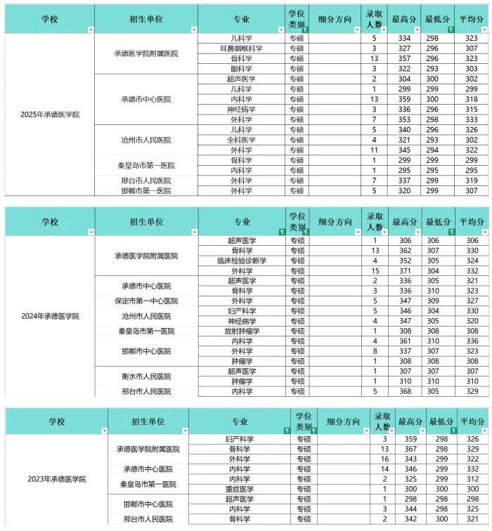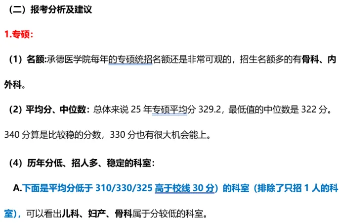 (1)名额:承德医学院每年的专硕统招名额还是非常可观的,招生名额多的有骨科、内外科。