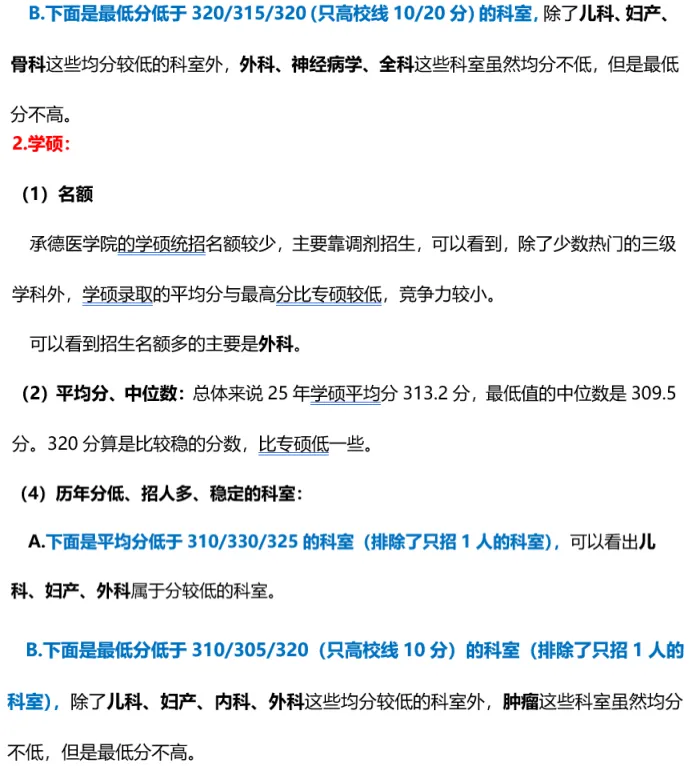 二、报考建议篇:分数线(学硕/专硕复试线、科室复试录取情况等)、报考分析及建议(学硕or专硕、哪些科室好上岸等)