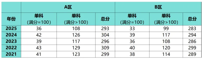 1.国家线:河北属于A区,下面是A区和B区临床医学306近5年国家线。
