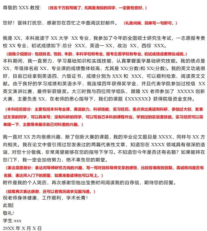 邮件主要是用来联系导师,承德医学院的话一般初试成绩出来后就可以给心仪导师发邮件了。联系导师前注意搜集一下导师信息,最好对目标导师的研究方向、发表论文有所了解之后,再写邮件,邮件里要附上你的简历。