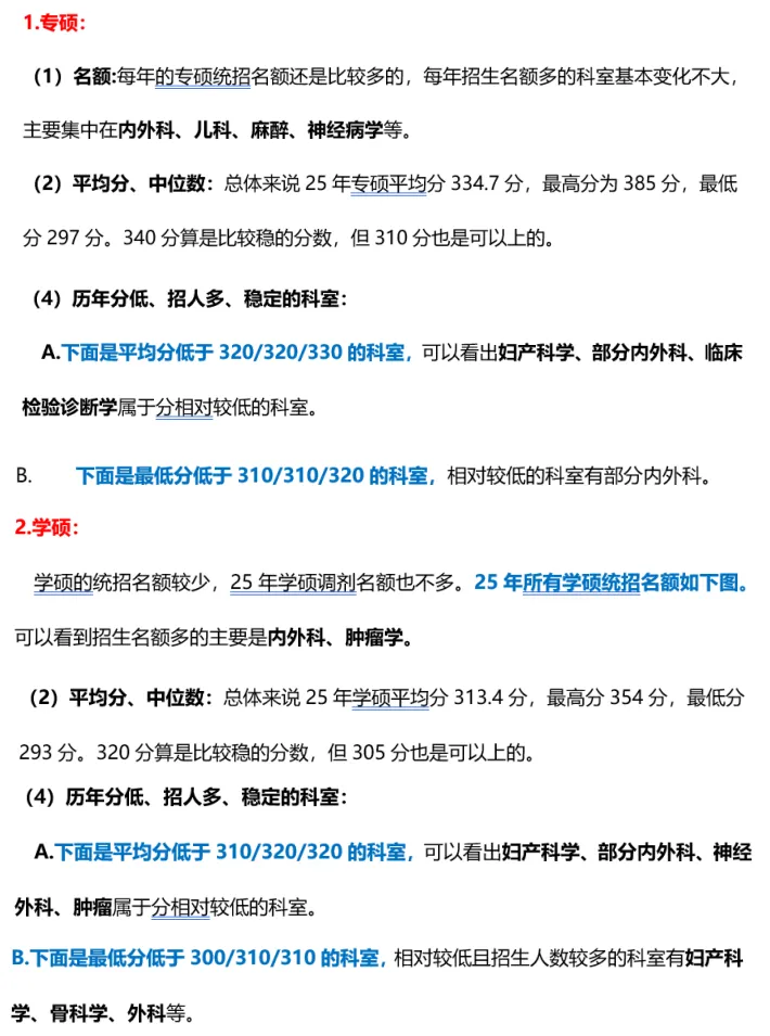 二、报考建议篇:分数线(学硕/专硕复试线、科室复试录取情况等)、报考分析及建议(学硕or专硕、哪些科室好上岸等)