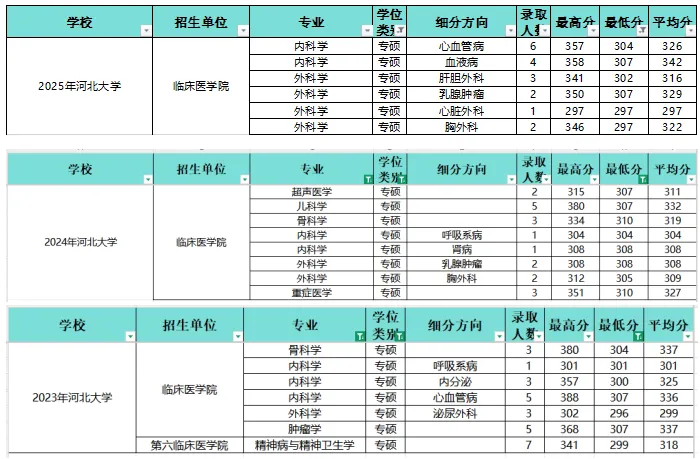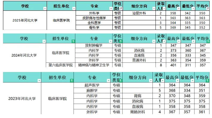 3.医院:河北大学以学院为单位进行招生,这里不做医院线分析。