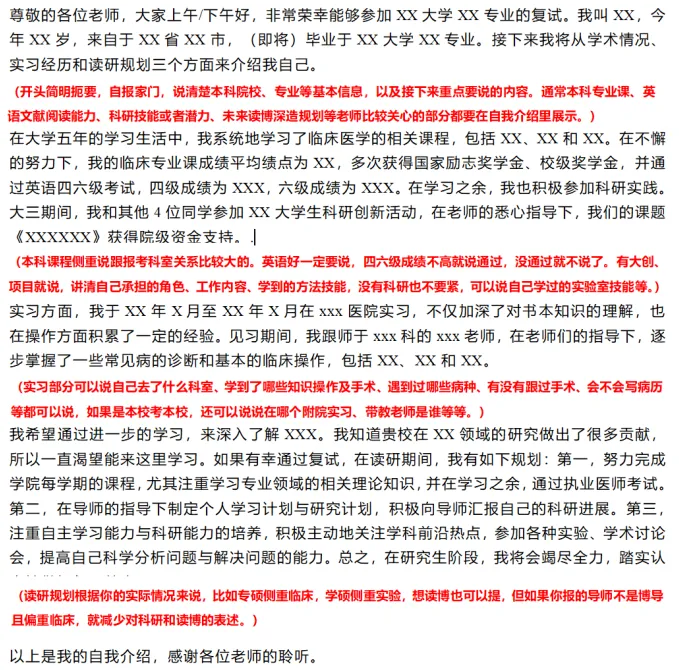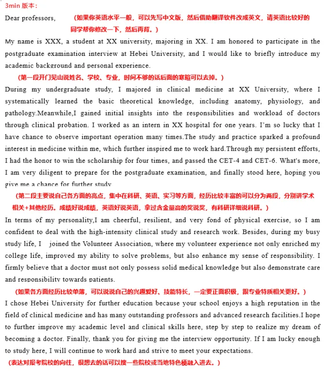 中英文版本都要准备,就算科室只要求中文/英文也准备双份,自我介绍重点准备英文版本,大概3min左右,要非常熟练。中文版本要更加注重信息准确性,注意不要跟简历内容自相矛盾。大家平时练习自我介绍时,可以对着镜子,注意调整自己的表情,不要像背书机器一样,尽量自然大方。
