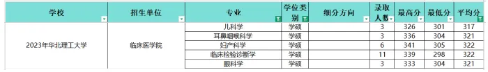华北理工大学的学硕统招名额较少,可以看到,除了少数热门的三级学科外,学硕录取的平均分与最高分比专硕低得多,竞争力较小。
