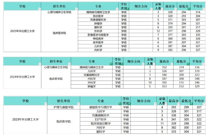 ②统招人数:下面是华北理工大学近3年专硕及学硕招生人数:可以看出来是25年学硕小幅扩招。