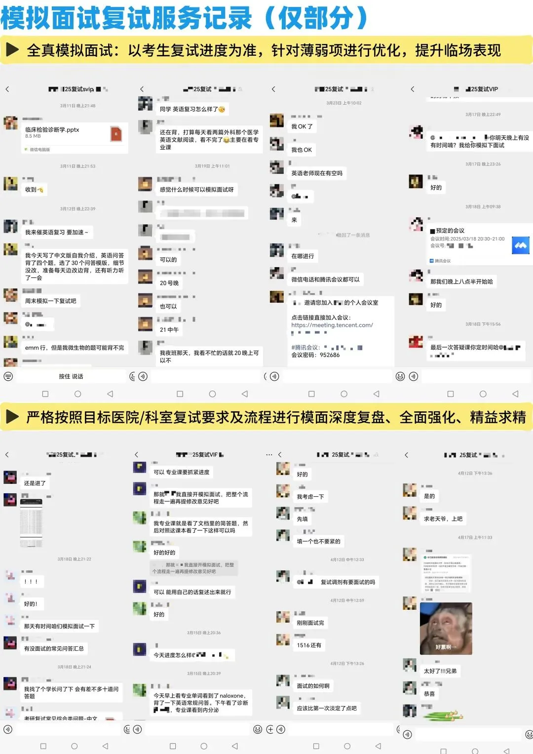 本校各个科室、各个医院,几乎都有我们各个团队的初试、复试录取学员、团队服务成员,没有什么打听不到的,所有关于本校初试、复试的相关问题,通通解决。你们可以看一下我们的通讯录截图,看一下我们资料页截图,然后看一下我们关于复试的,各项带学生的服务记录,你会发现,做本校考研初复试的团队,比我们专业的,几乎没有!!!