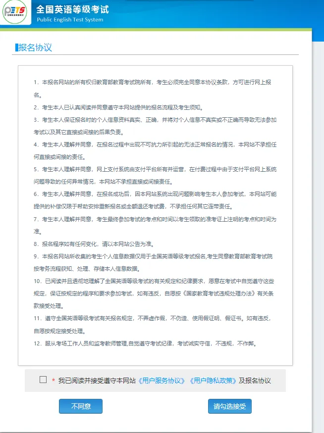 报考者不受年龄、职业、学历、户口所在地等限制(义务教育阶段学生除外),可根据本人掌握英语的实际情况,选考不同的级别,但一次只能报考一个级别。