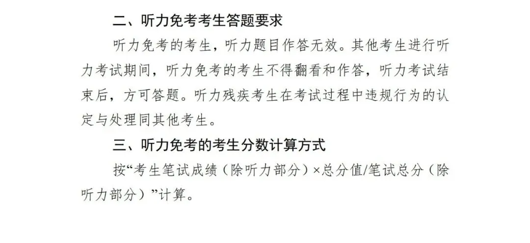 (三)听力残疾考生完成报考后可申报笔试听力部分免考,具体指引见附件。