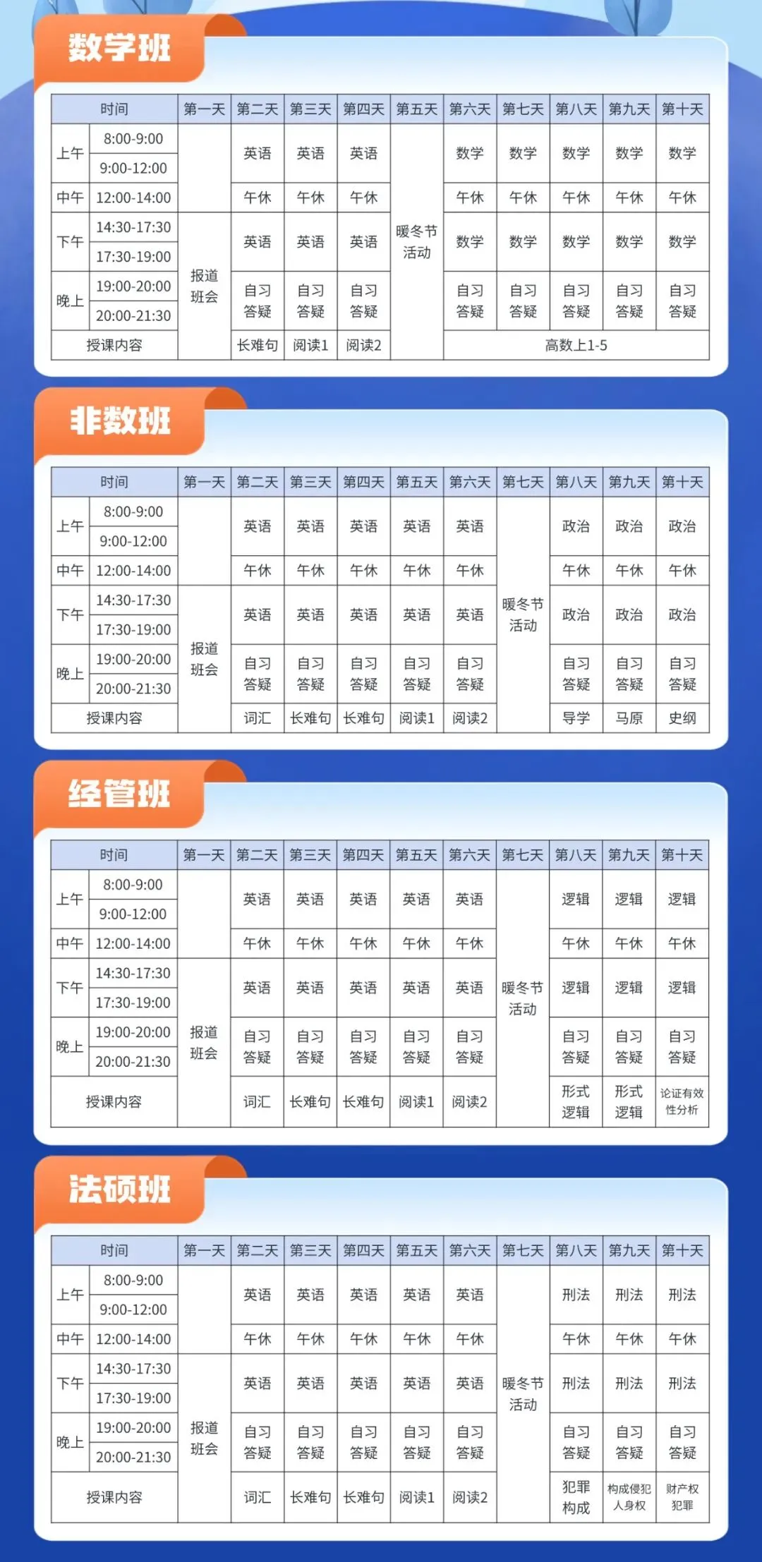 来看下寒假集训的课表↓