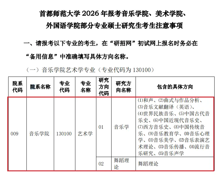 5.报考我校音乐学院艺术学专业(专业代码为130100)、美术学院艺术学专业(专业代码为130100)和美术学院美术与书法专业(专业代码为135600),请仔细阅读《2026年招收攻读硕士学位研究生专业目录》中相关专业研究方向备注,网上报名时,务必在“备用信息”一栏准确填写所选择的具体方向名称。