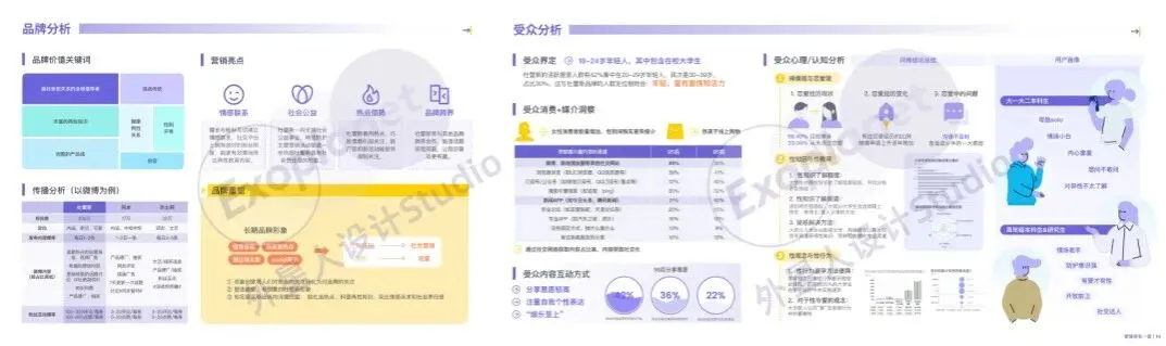 开开学姐个人作品集内页↑那么第三个项目,也是因为前两个项目从零DIY耗费的时间精力过多,我在第三个项目非常大胆的直接拿来了一个本科的营销策划案。这里就是为了展示我的1.本科专业能力。说不定可以给大家提供一点小灵感的是,这个项目最终放进作品集里,我是做了一些内容上的调整的,这个调整主要是将原来的营销策划案的推导流程微调得更加匹配设计思维、设计流程,这也是因为我发现广告思维和设计思维两者有很多相似之处,而这种匹配度就可以被拿来作为我可以丝滑跨专业至交互设计的一方面例证——两者有共同之处,我发现了这样子的共通之处,并且想要在两方面都深入精进,同时进行跨学科的联合探究。