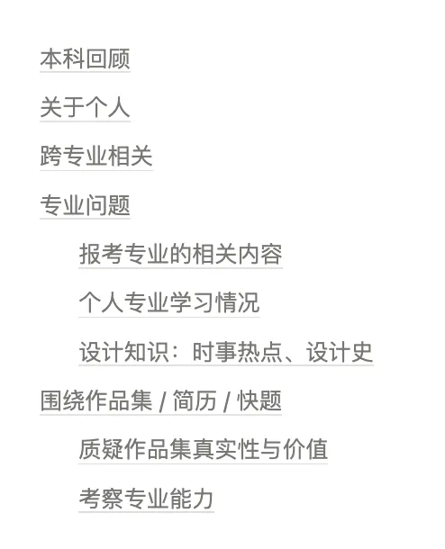 因为老师他们去想问题也是非常的抓耳挠腮,要面对那么多不同专业背景的学生,每个人都捧出了20页+的作品集和一堆其他材料,信息量巨大,他也得花很多的时间去思考你到底有什么地方是值得提问的。