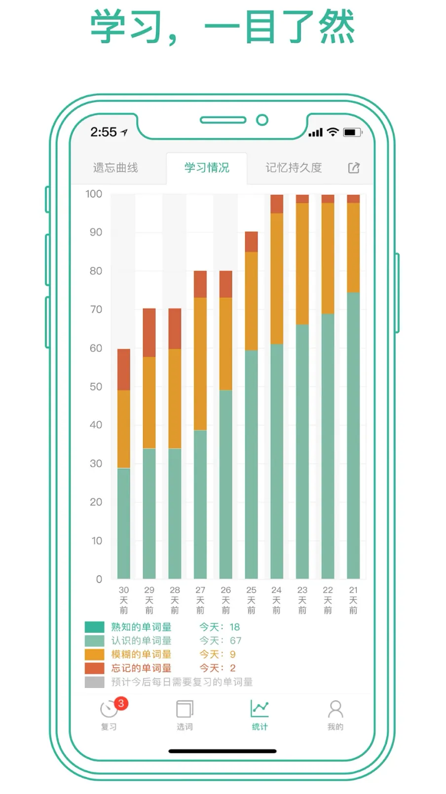 简单来说,就是根据人脑遗忘规律,在你最容易忘记单词的时候,及时提醒你复习。这样,单词就像被“钉”在脑子里一样,想忘都难!比如,你今天背了“abandon”,它会在你快忘记的时候,提醒你再复习一遍,帮你把单词记得牢牢的。