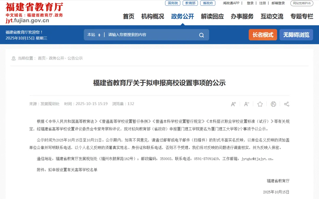 2025年10月厦门理工迎来了省教育厅公示,也就意味着学校更名大学已顺利通过地方审核,距离成功更名仅剩教育部最终审批环节!
