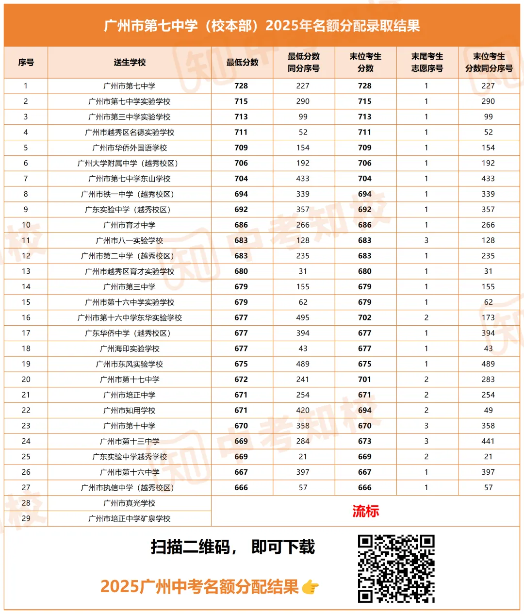 流标情况:七中校本部有2所分配到学校名额分配计划的初中没有学生被录取。