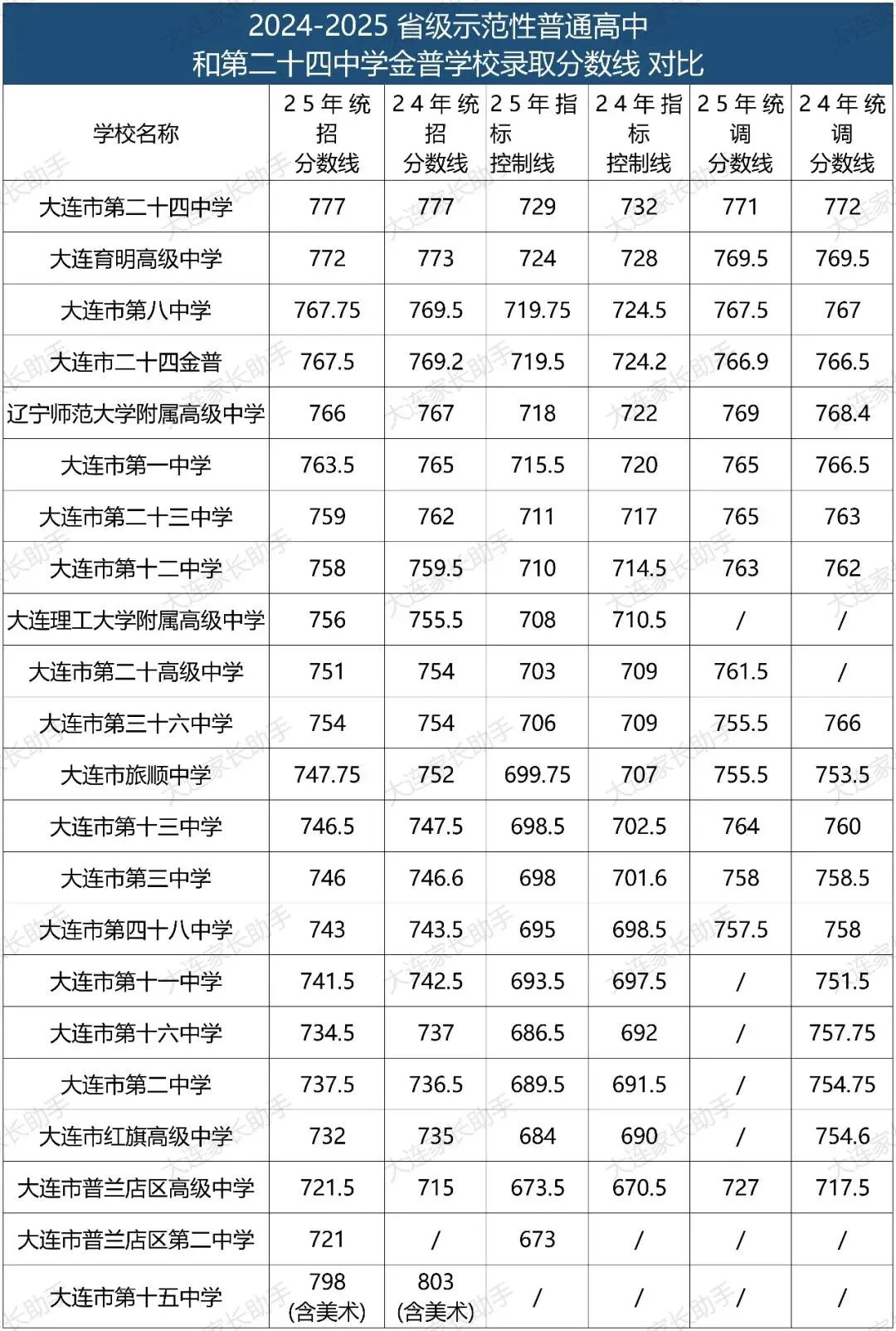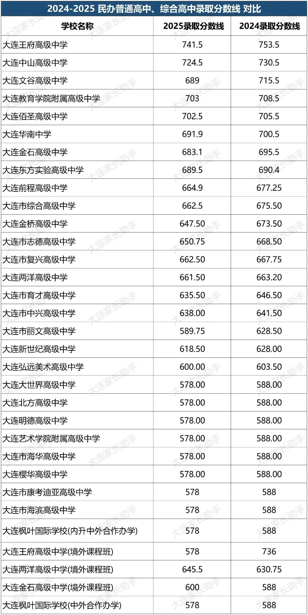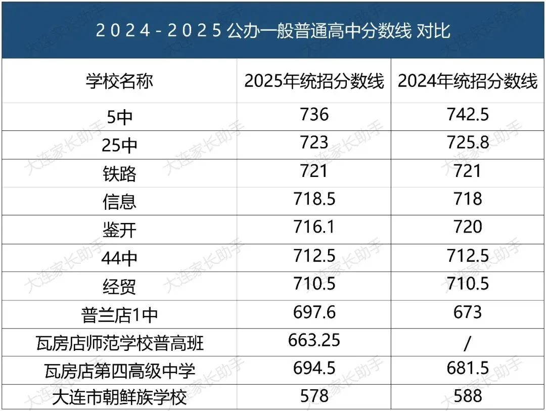 >大连新中考61所高中录取分数线对比