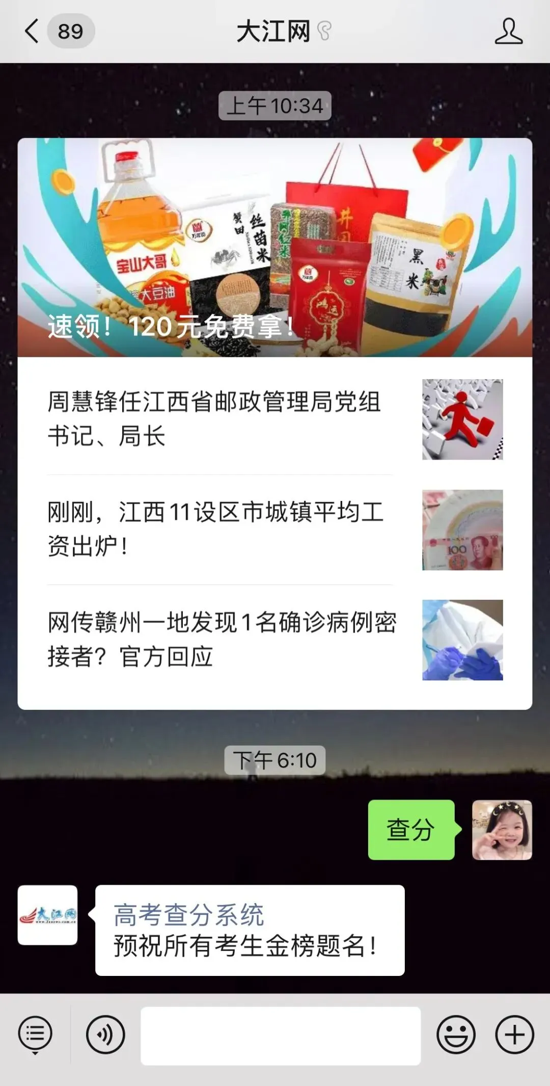 回复关键词【查分】或【高考】