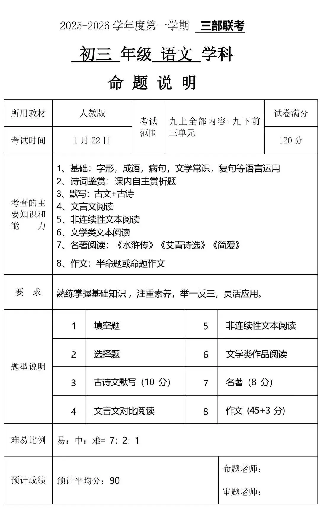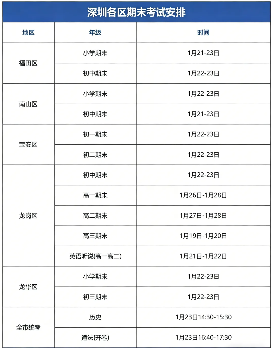 关于期末考试安排,目前市教育局已官宣的日程是:初三历史与道法科目将于1月23日进行全市统考。