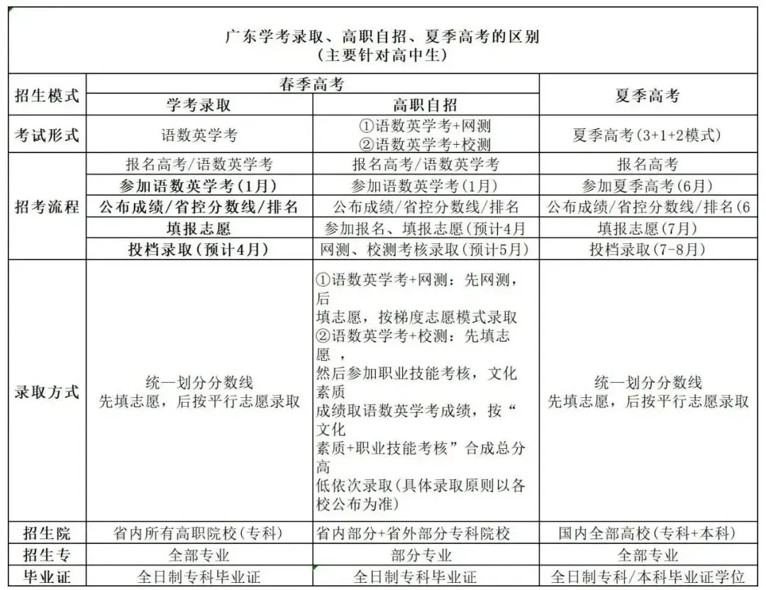 高职自主招生是指广东省高等职业院校自主招收高中、中职对口专业应届毕业生、往届生的一种考试形式,文凭性质和普通高考入学一致,皆为全日制。总成绩构成为语数英学考成绩+校测/网测成绩。