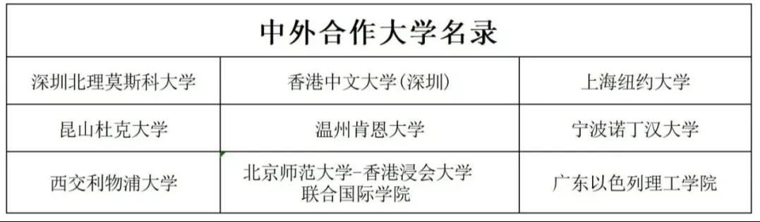 中外合作大学名单:
