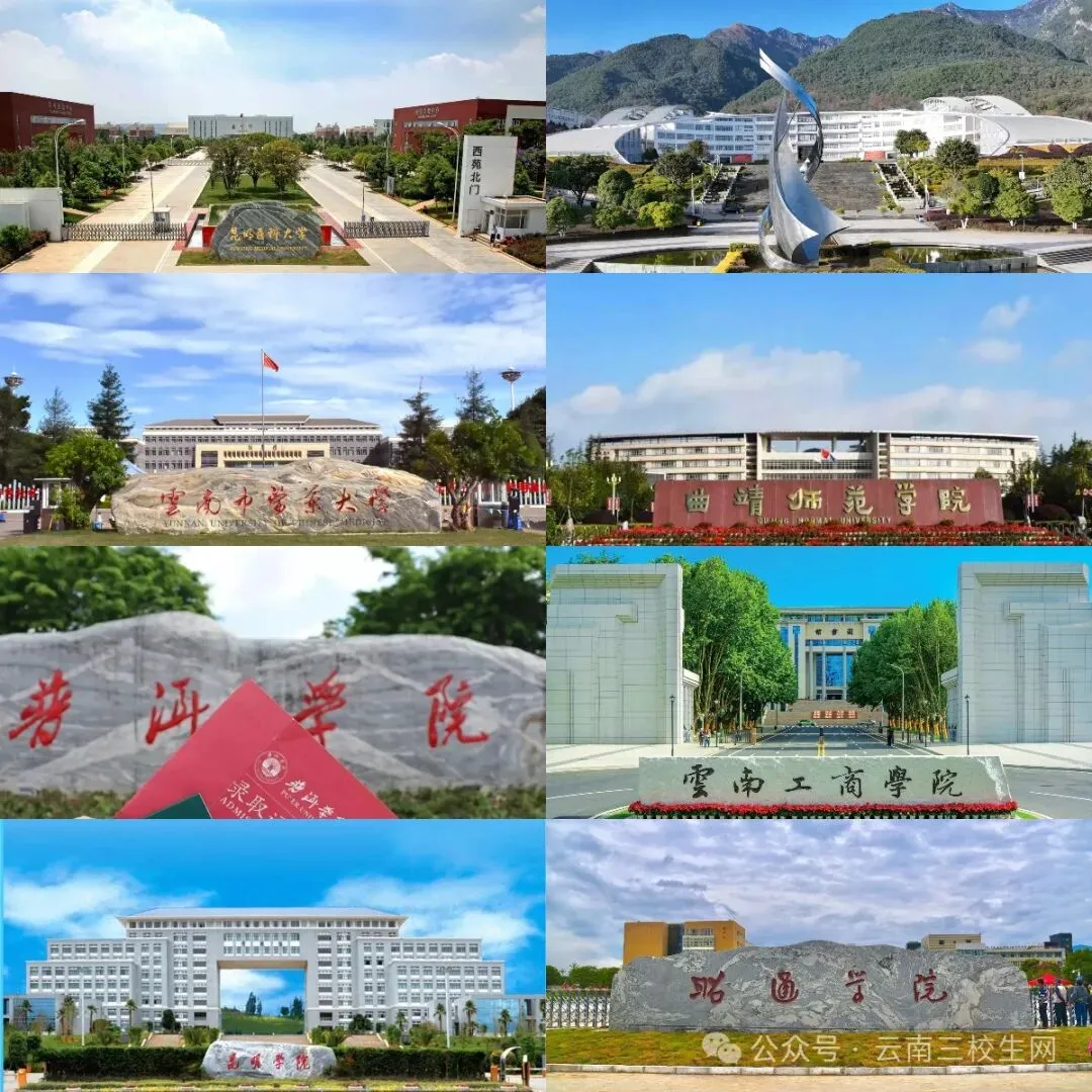 丽江师范学院(原丽江师范高等专科学校)、德宏师范高等专科学校、德宏师范高等专科学校(师范类专业)、云南新兴职业学院、云南锡业职业技术学院、云南经贸外事职业学院、云南三鑫职业技术学院、德宏职业学院、德宏职业学院(医学类)、云南商务职业学院、昆明卫生职业学院、云南现代职业技术学院、云南旅游职业学院、红河卫生职业学院、云南外事外语职业学院、云南财经职业学院、昆明铁道职业技术学院、昭通卫生职业学院、大理护理职业学院、云南水利水电职业学院、云南特殊教育职业学院、云南工贸职业技术学院、云南交通运输职业学院、昆明幼儿师范高等专科学校、云南医药健康职业学院、云南理工职业学院、曲靖职业技术学院、红河职业技术学院、玉溪职业技术学院、保山职业学院、昭通职业学院、文山职业技术学院、丽江职业技术学院、香格里拉职业学院、怒江职业技术学院、临沧职业学院。