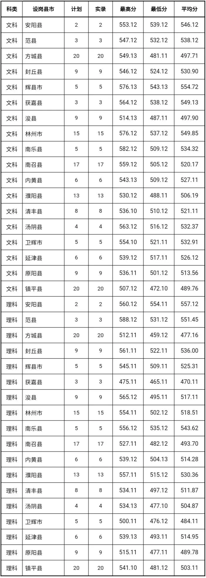 近几年在我省普通本科录取分数位次相对趋于稳定,去年文科最低分537分,高出省控线71分;理科最低分492分,高出省控线92分。有关艺术、体育及专科录取情况,广大考生可登录安阳师范学院招生网(zs.aynu.edu.cn)。