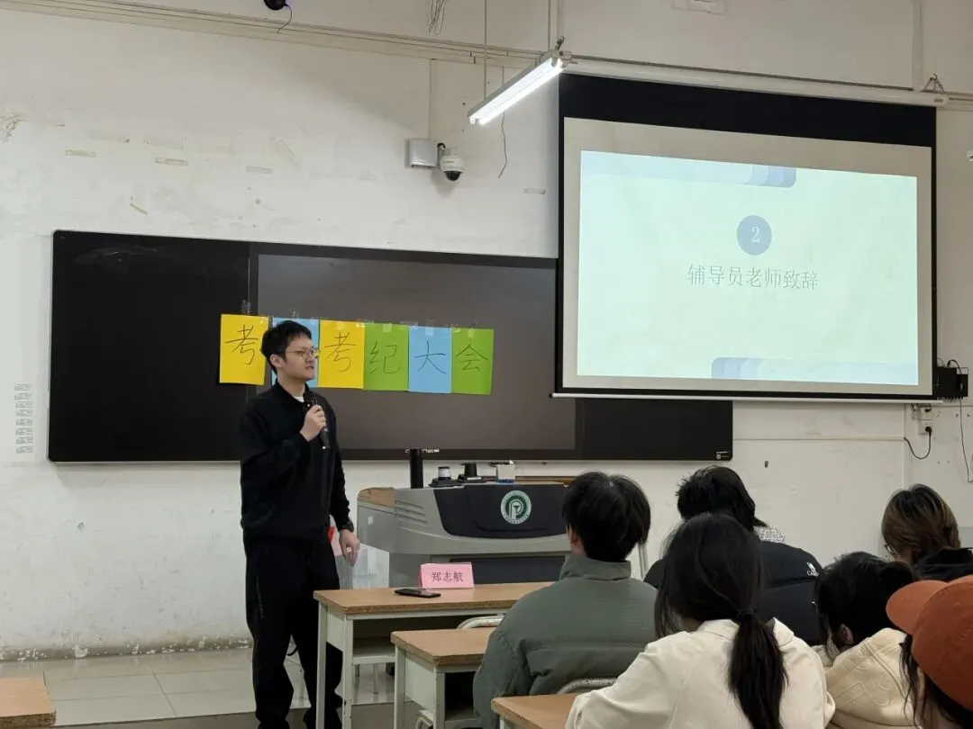 针对考风考纪,辅导员郑志航提出三点希望与要求:一是树立正确考试观念,将考试视为检验学习成果、提升自我能力的契机,以积极心态、诚信态度应考,用真实水平展现学习成效;二是严格遵守考试纪律,认真学习并践行学院考试规定,不携带无关物品入场,坚决抵制抄袭、作弊等违纪行为,坚守诚信底线;三是加强自我管理约束,考前做好复习规划,合理安排作息,考试中沉着审题、规范作答,做到心中有法、行中有矩。