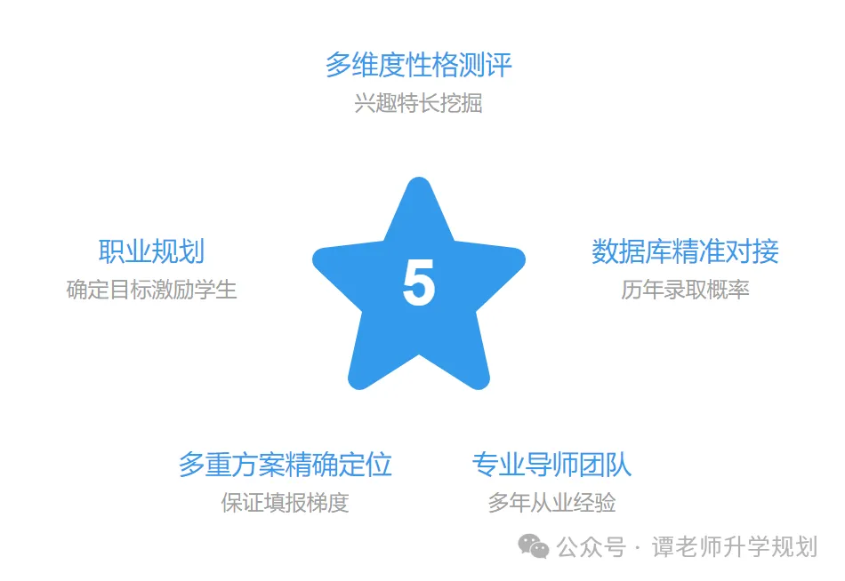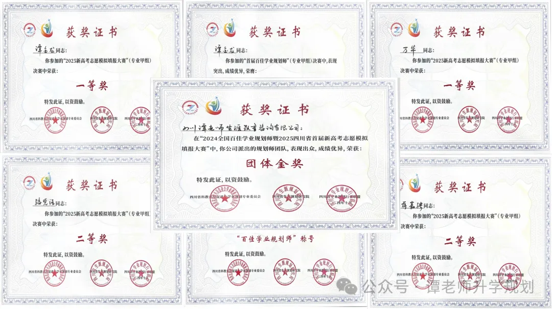 四川谭老师生涯教育咨询有限公司是一家专注于中学生生涯教育的专业机构。公司拥有一流的规划老师团队、完善的规划指导流程、顶尖的规划服务系统,提供覆盖中学生升学规划、学业规划、新高考生涯规划的全方位服务。公司升学规划服务包含高考志愿填报、志愿填报VIP、强基计划、综合评价、港澳留学、背景提升等;学业规划服务包含中学生定制一对一、新高考选科及规划指导、学情管理、心态调整等。