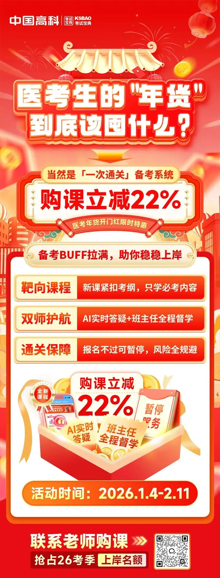 即日起至2月11日,购课立减22%,助你备考BUFF拉满,稳稳上岸!