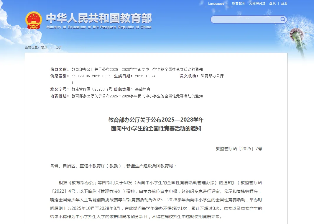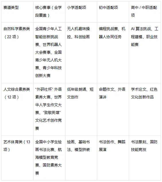 ✅ 官方背景:教育部联合四部门审核,剔除商业竞赛、“山寨赛事”,仅保留 47 项优质赛事(2025-2028 学年最新名单)